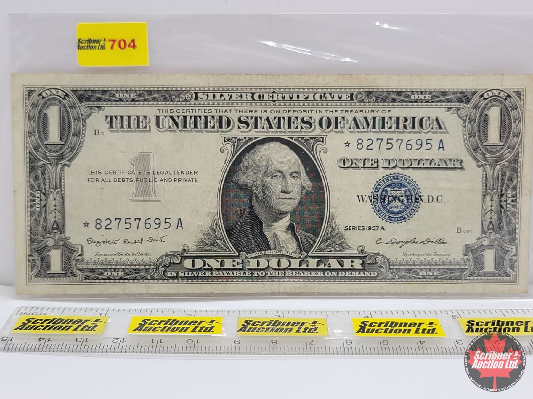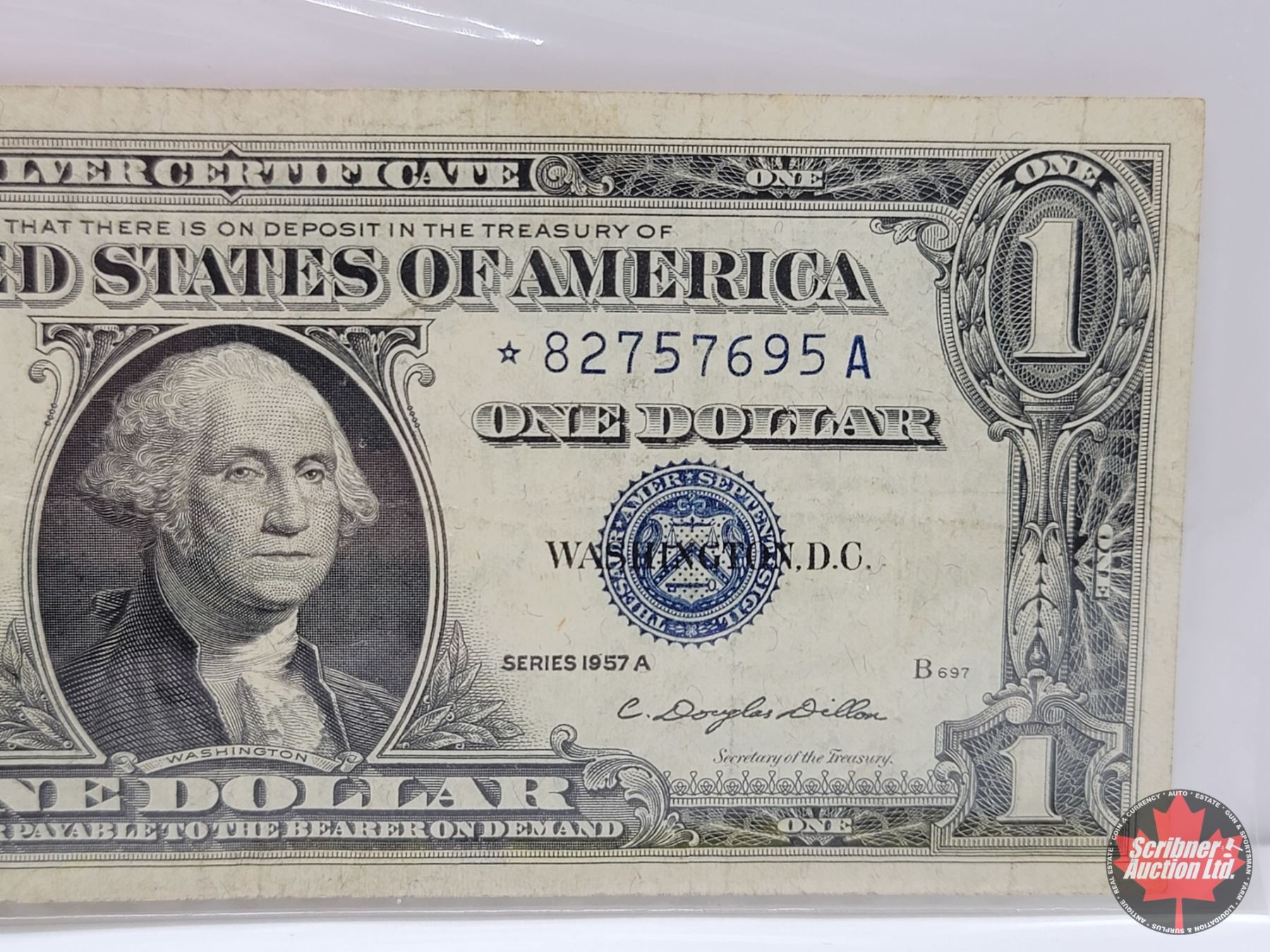 US $1 Bill 1957A Blue Star Replacement Bill "Silver Certificate" : S/N# * 82757695A (See Pics for Varieties, Conditions, Serial Numbers & Signatures)