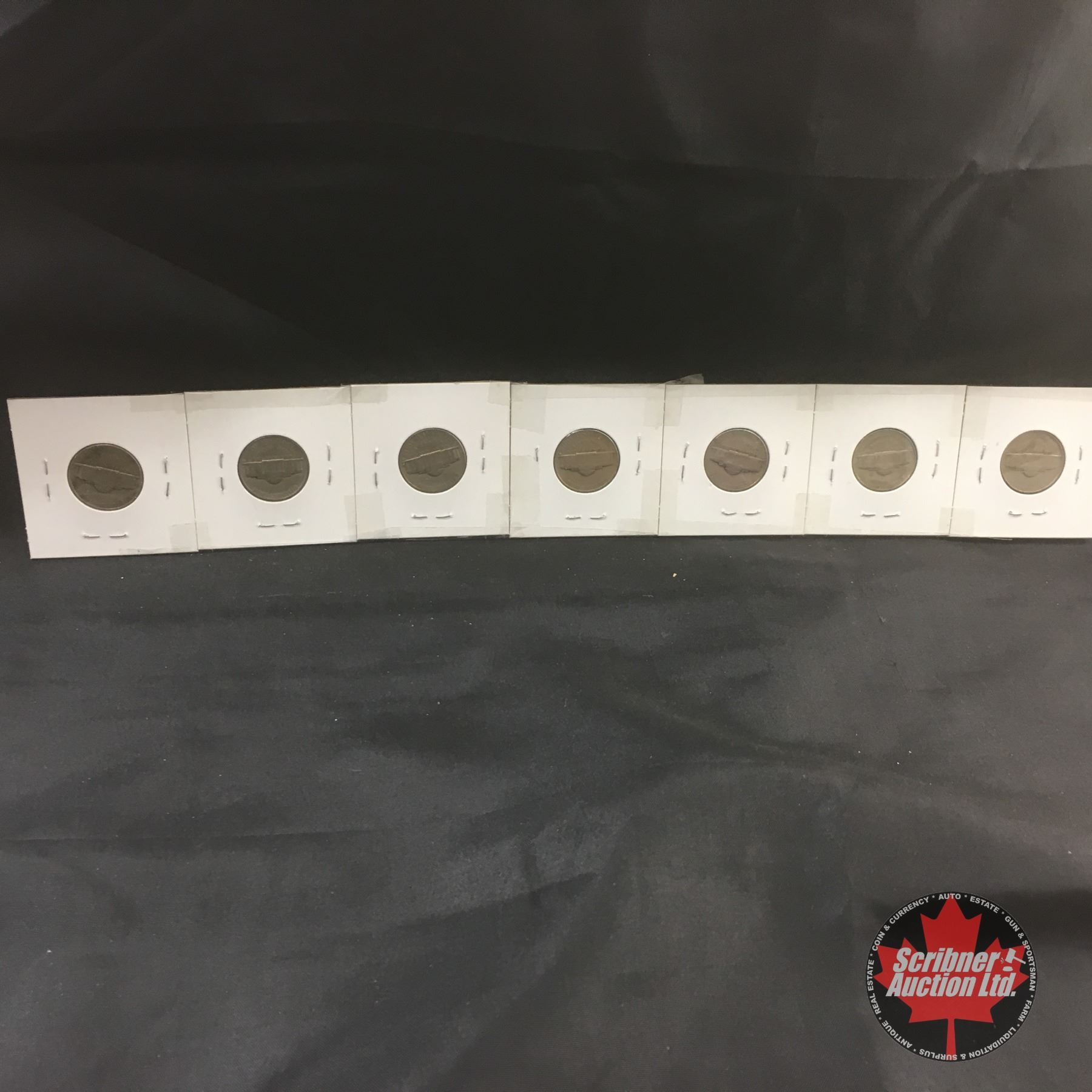 US Five Cent - Strip of 7: 1946; 1946; 1947; 1947; 1948D; 1949D; 1952