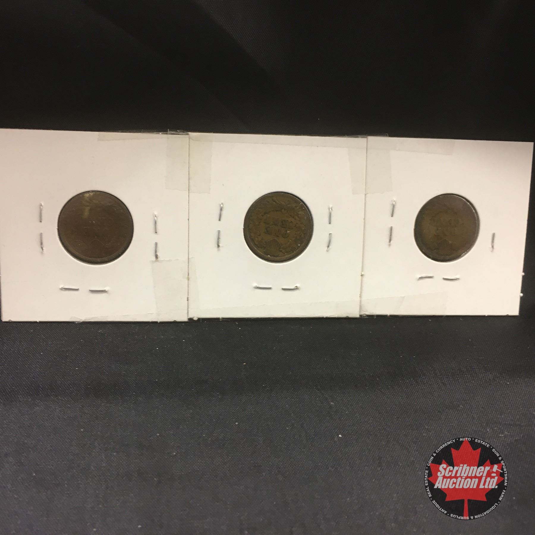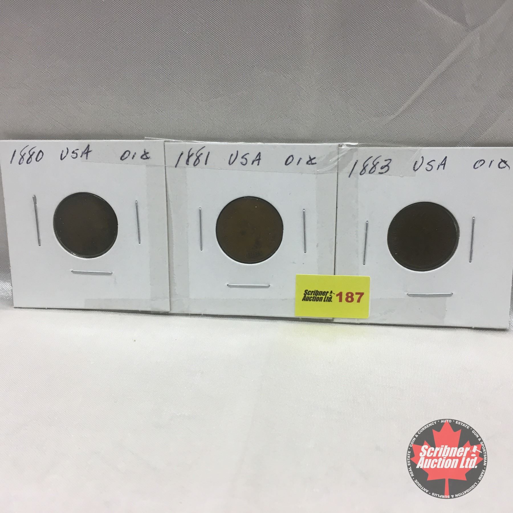 US One Cent - Strip of 3: 1880; 1881; 1883