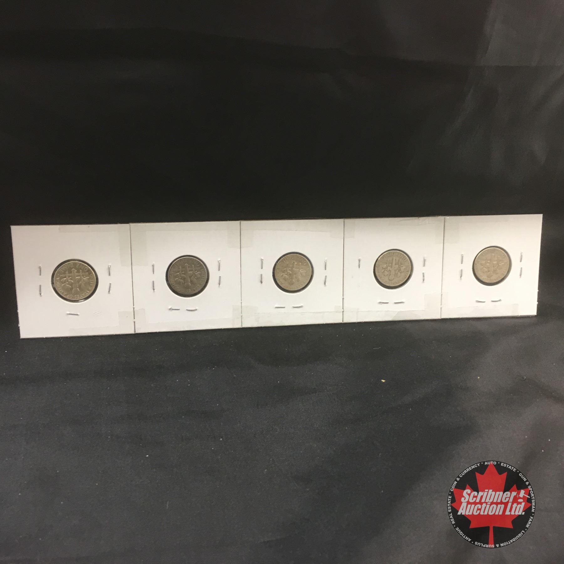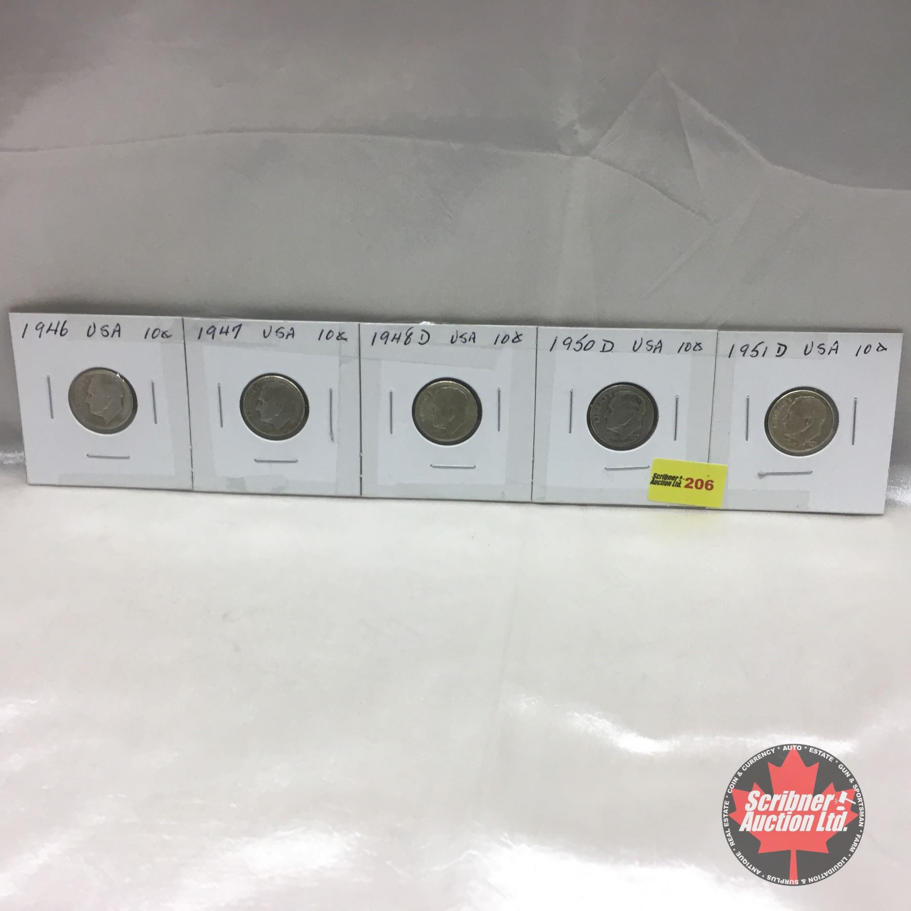 US Ten Cent - Strip of 5: 1946; 1947; 1948D; 1950D; 1951D