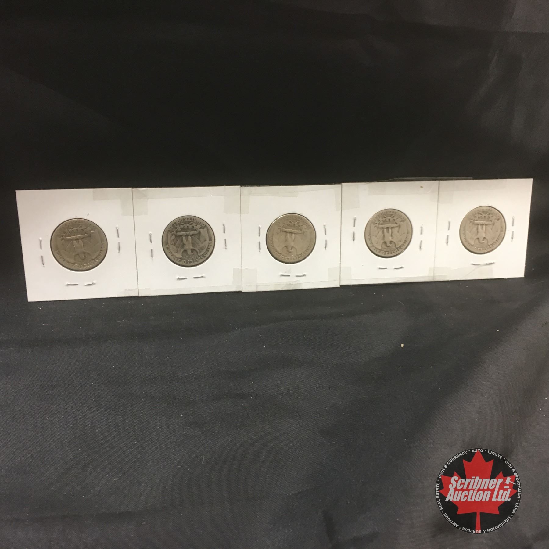US Twenty Five Cent - Strip of 5: 1934; 1936; 1940; 1941; 1942