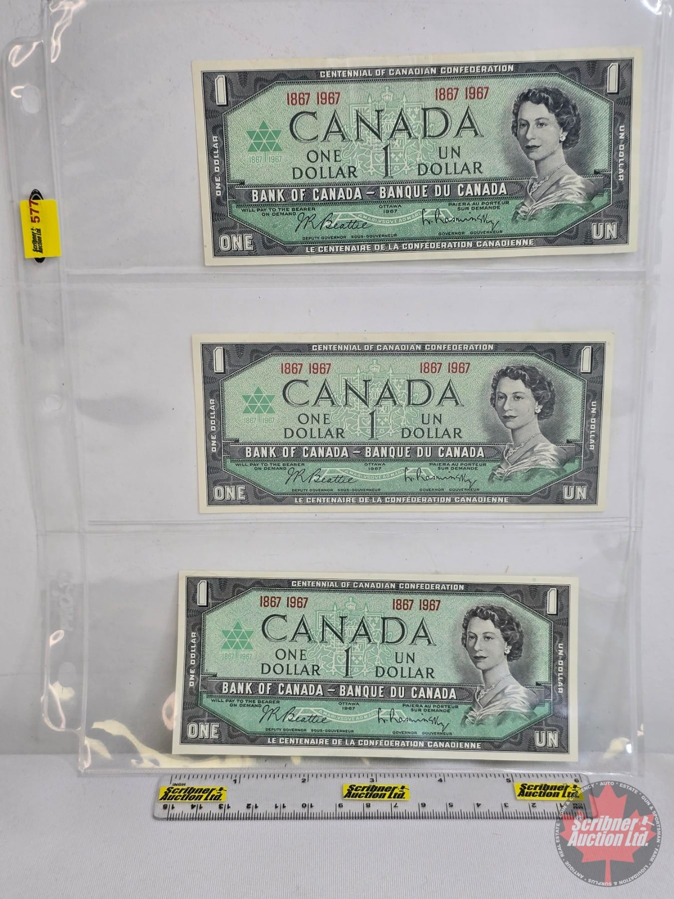 USA $1 Bills (3): 1867 1967 Beattie/Rasminsky (See Pics for Varieties, Conditions, Serial Numbers, P