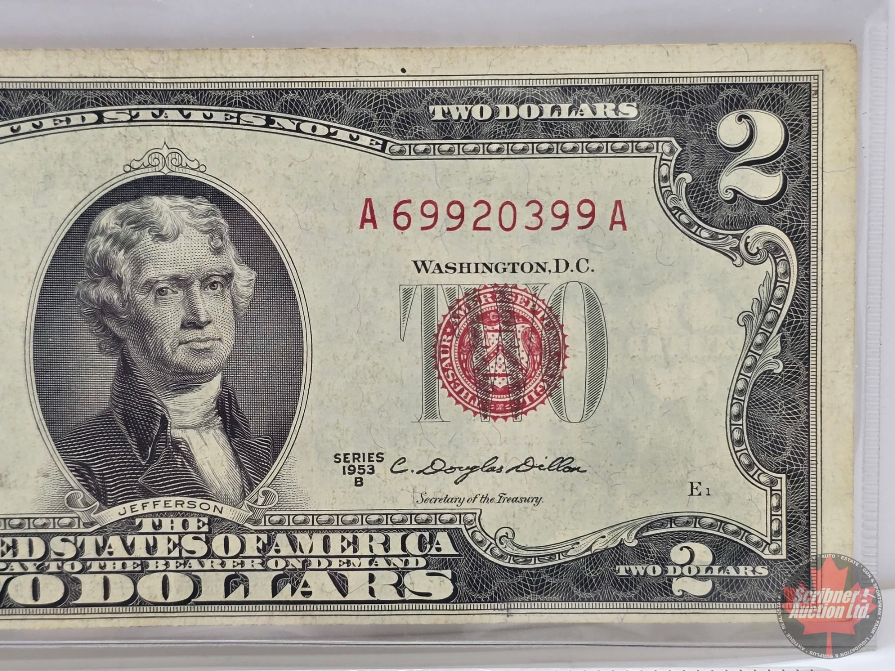 USA $2 Bill 1953B #A69920399A (See Pics for Varieties, Conditions, Serial Numbers, Printing Dates &