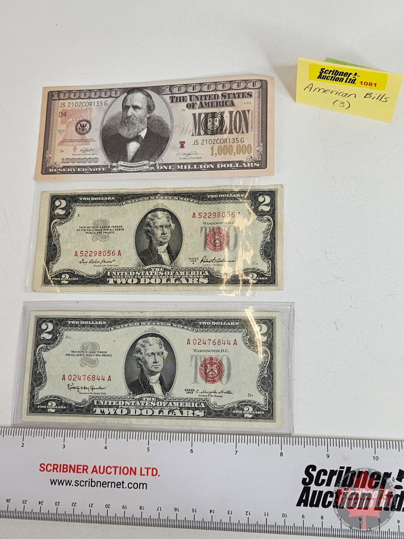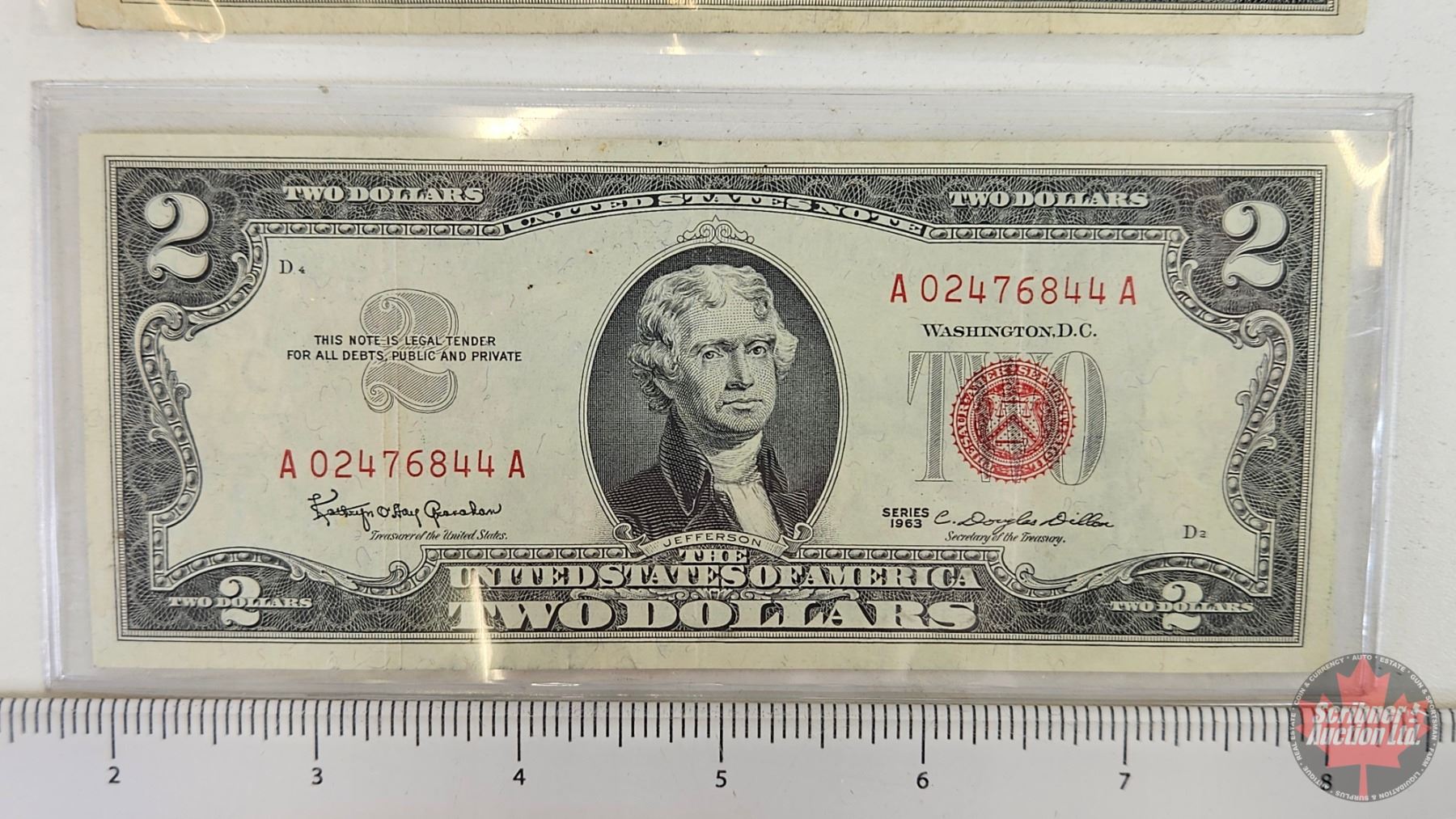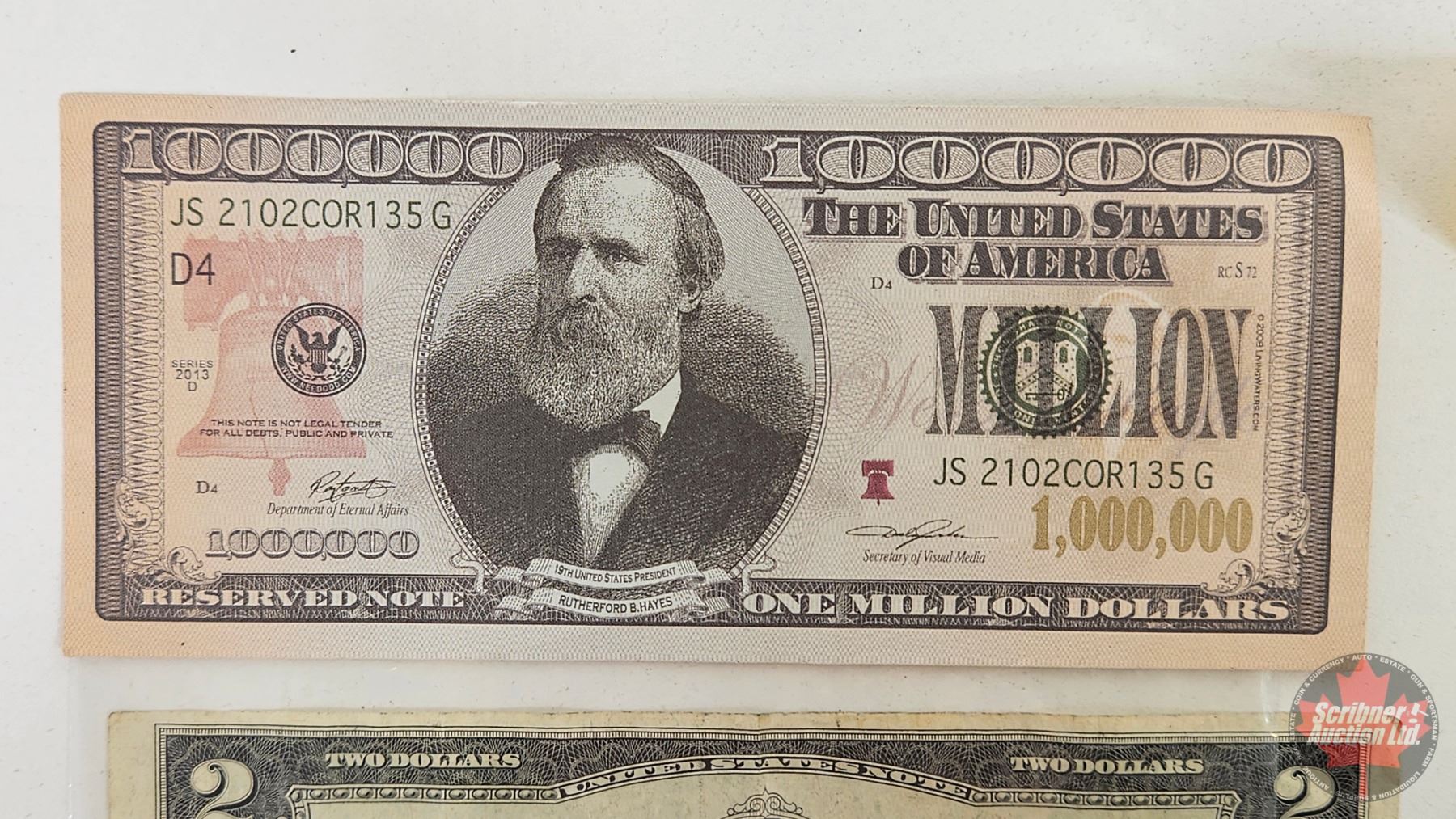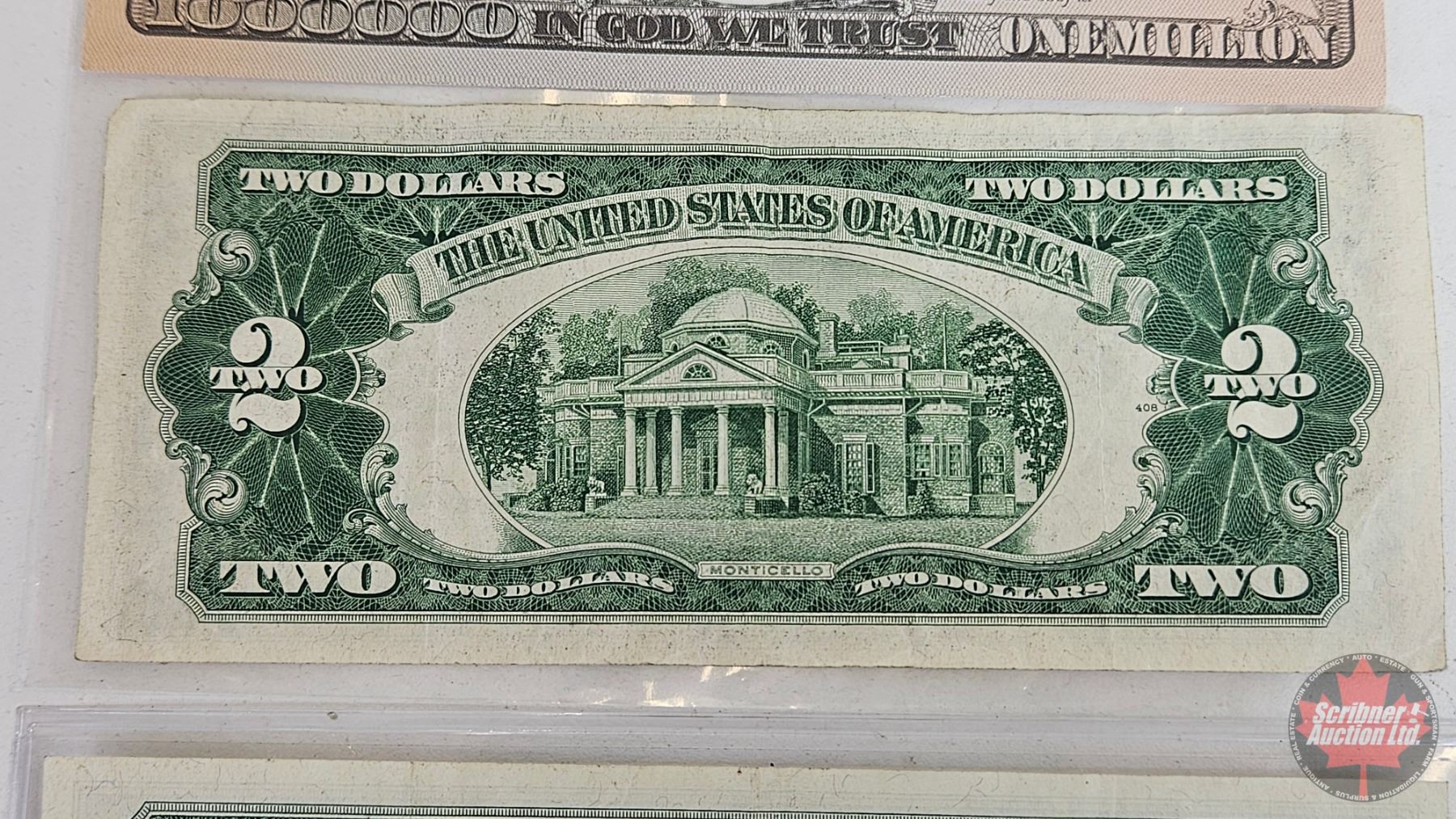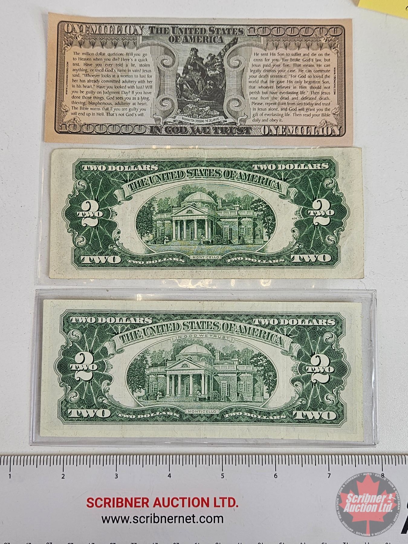 USA $2 Bills 1953 & 1963 (2) + Novelty Million Dollar Bill