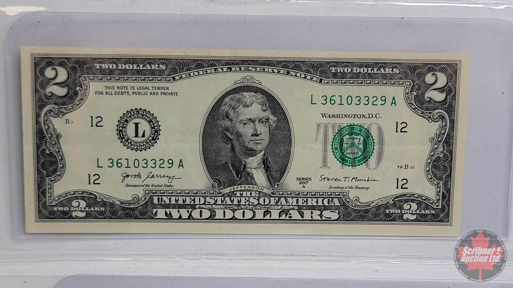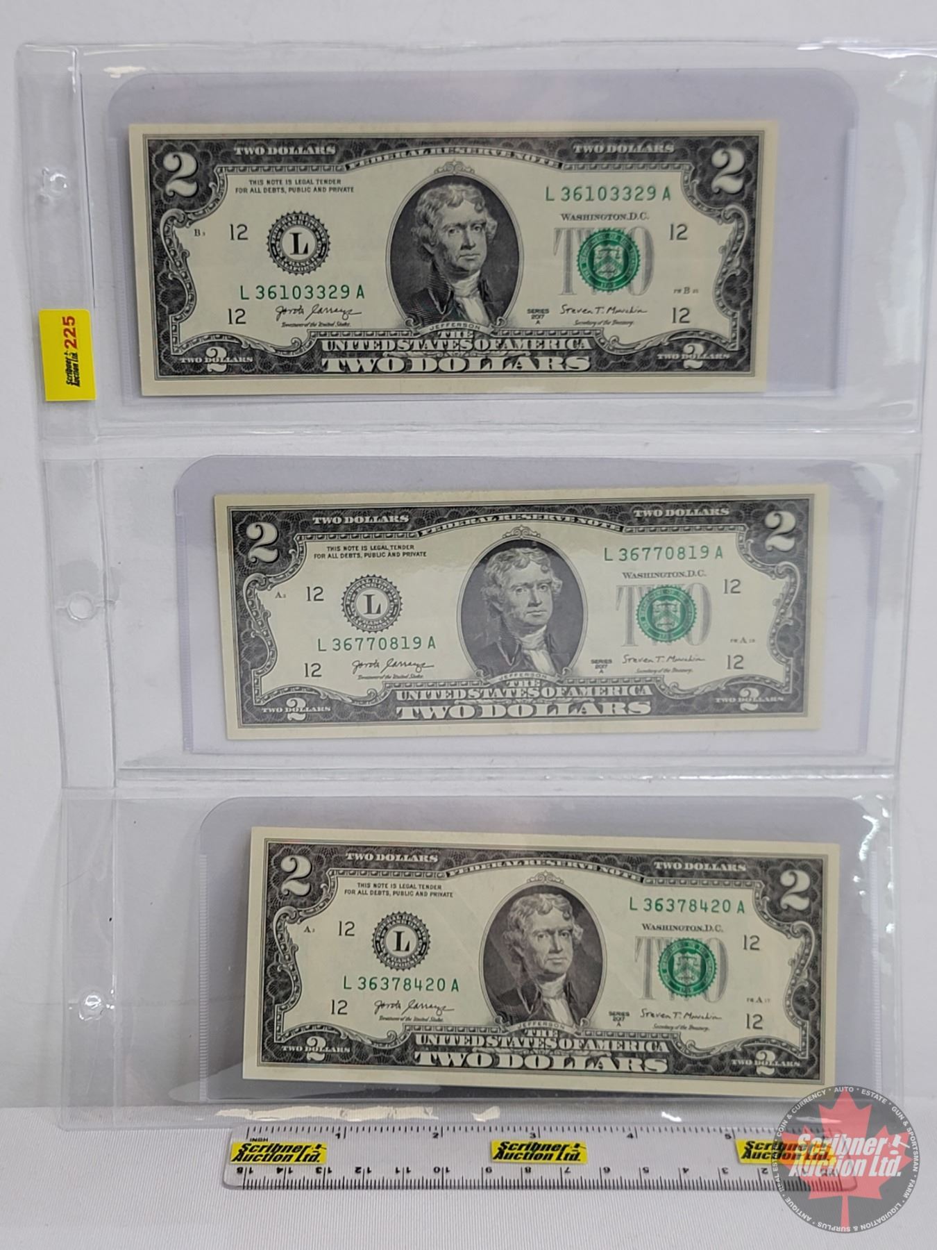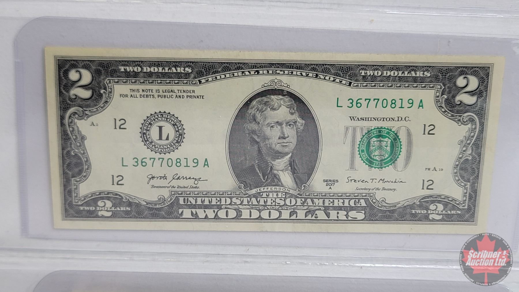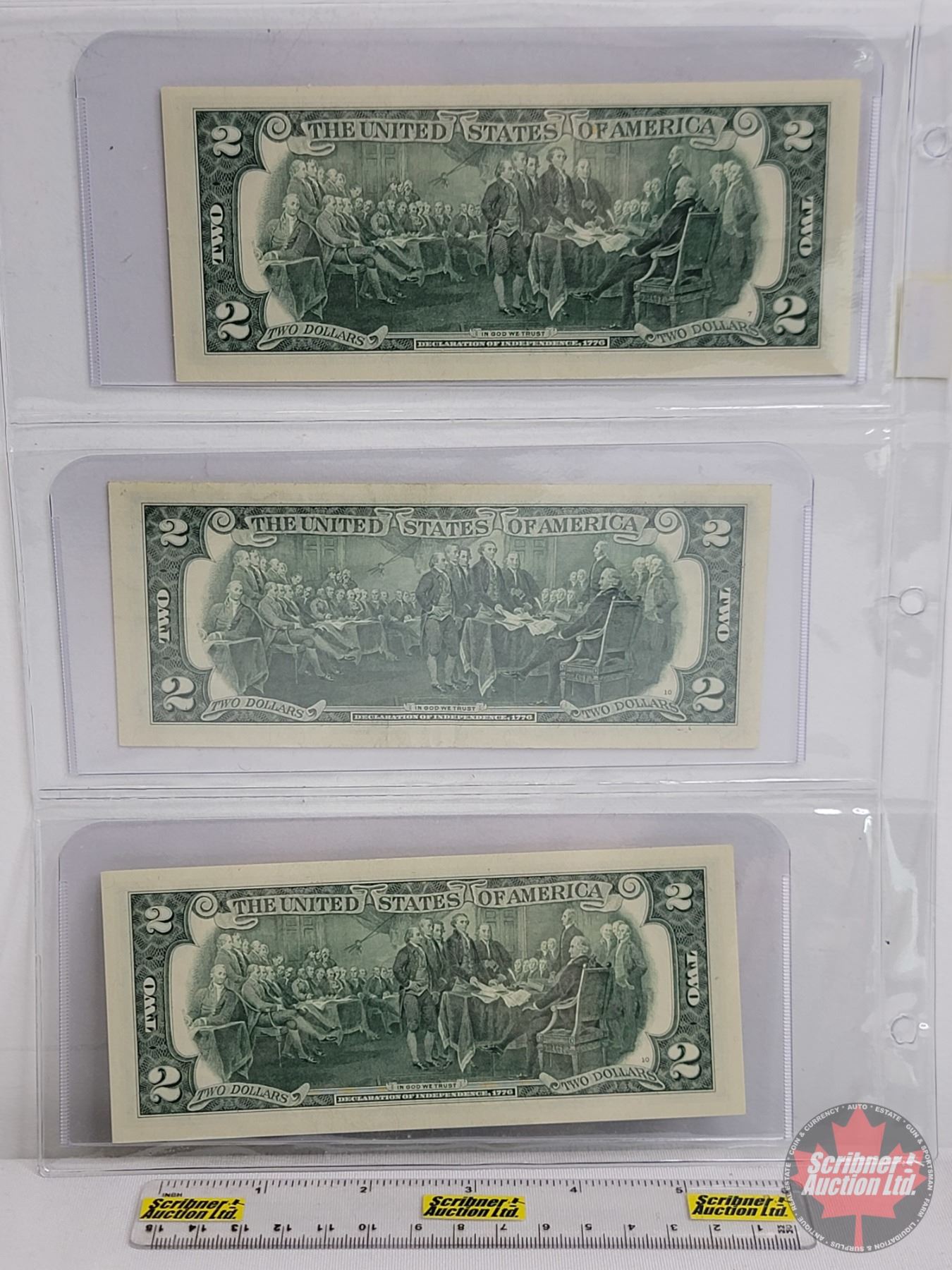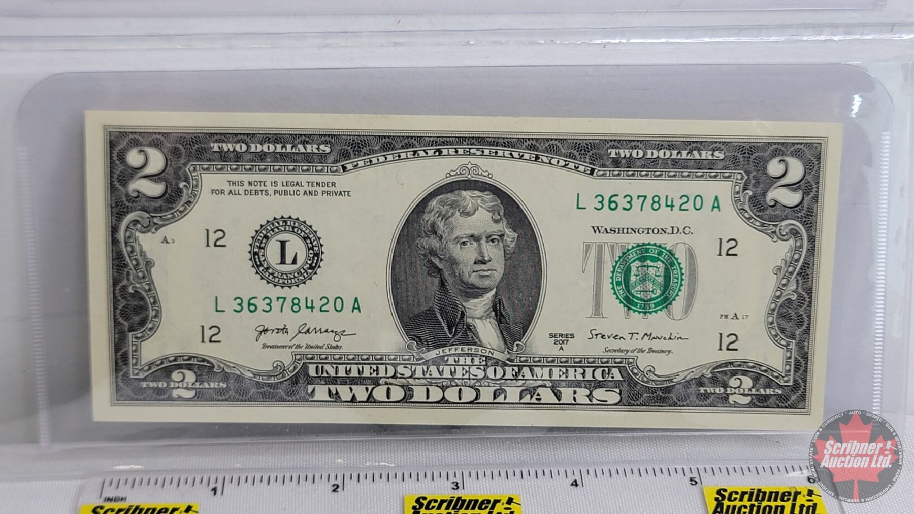 USA $2 Bills 2017 (3) (See Pics for Varieties, Conditions, Serial Numbers, Printing Dates & Signatu