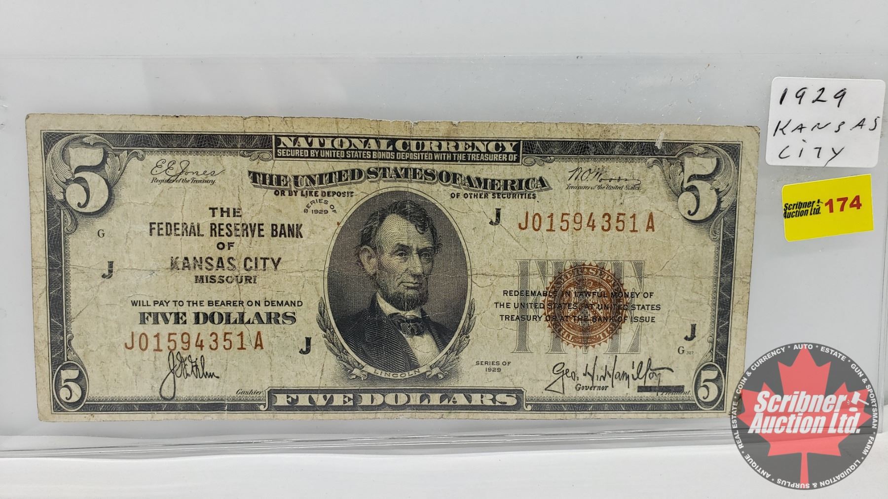 USA $5 Bill 1929 (S/N#J01594351A)