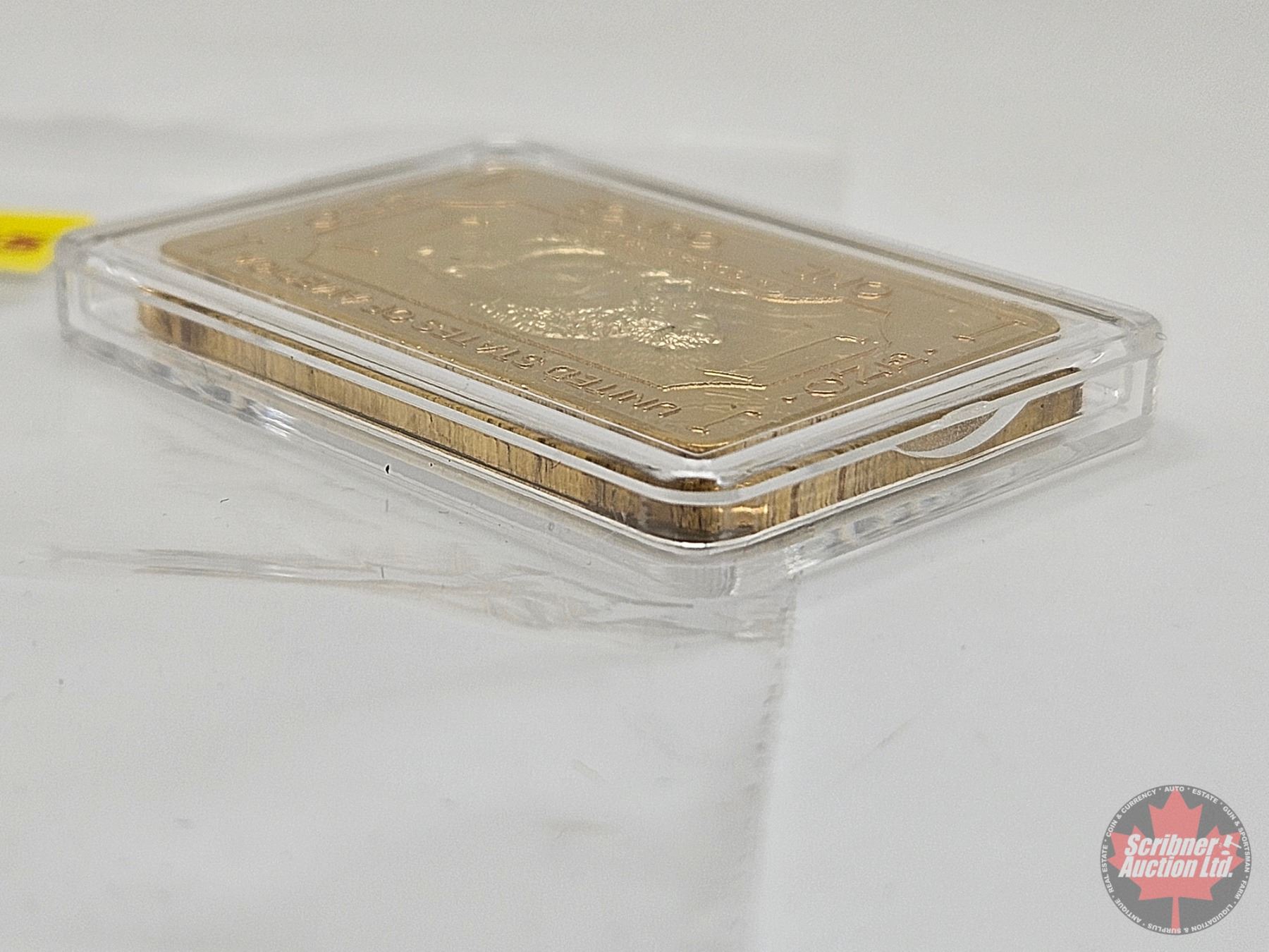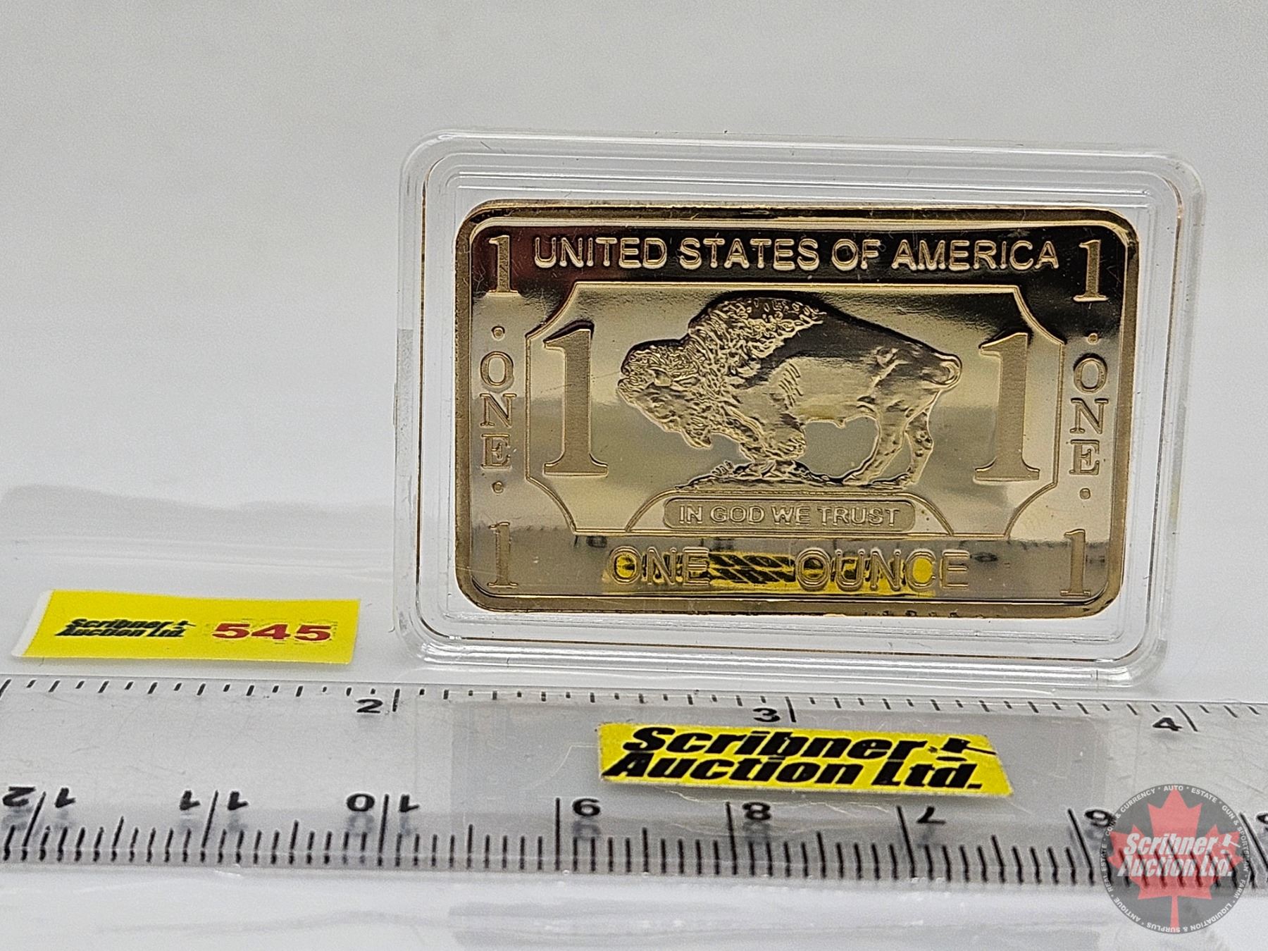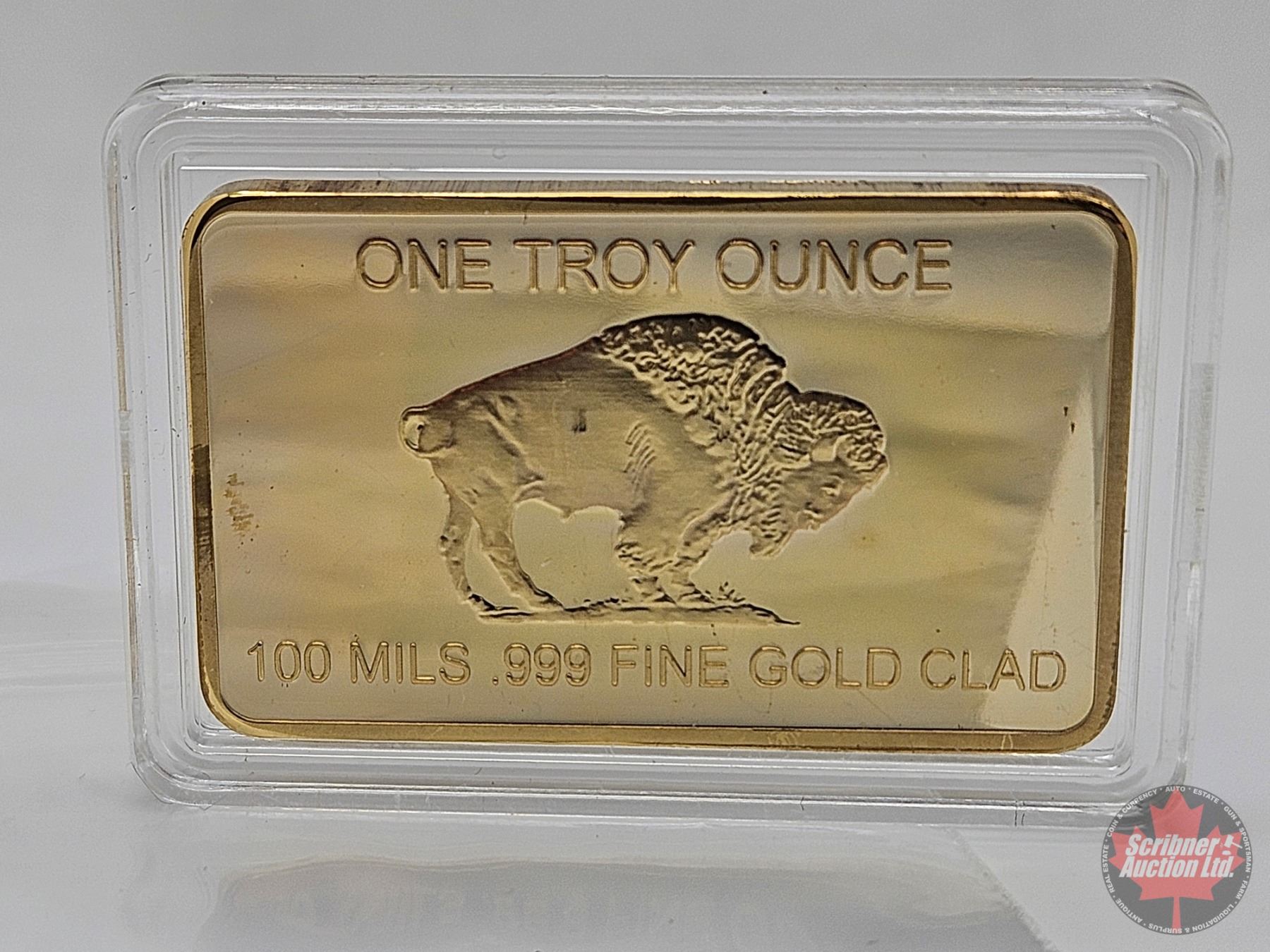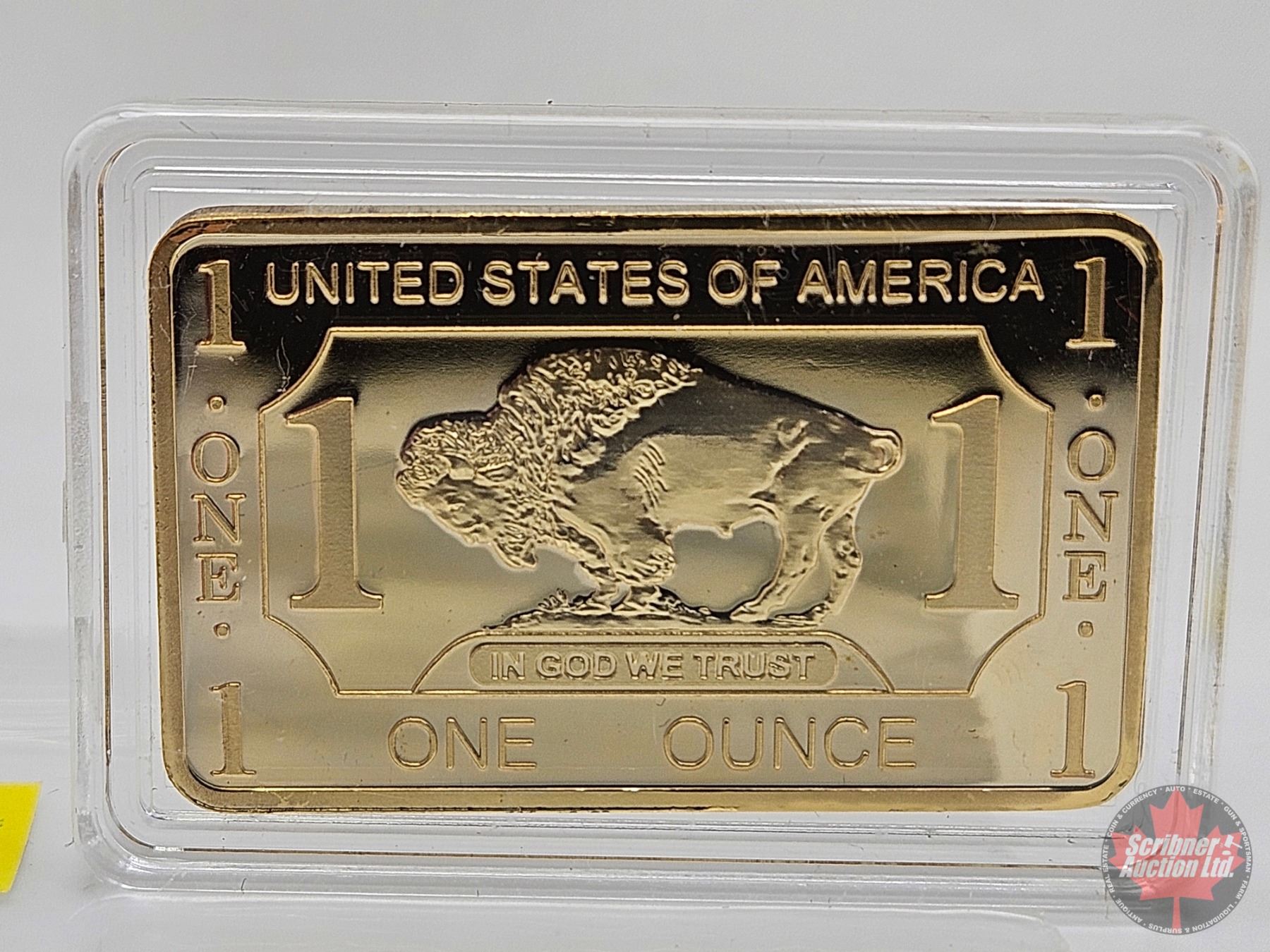 USA Buffalo Commemorative Limited Edition : 1 Troy Ounce .999 : 100 Mills Gold Clad Bullion Bar