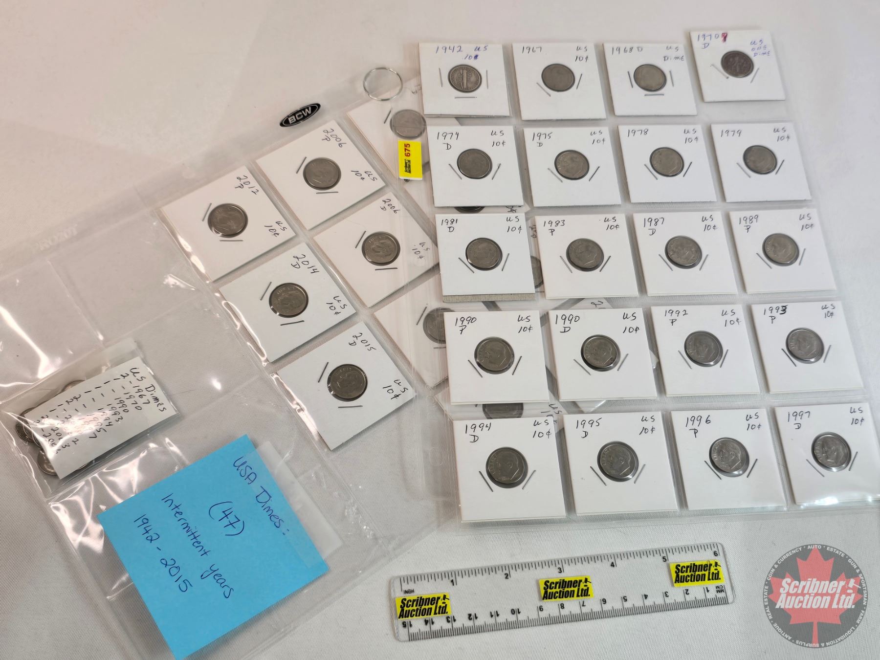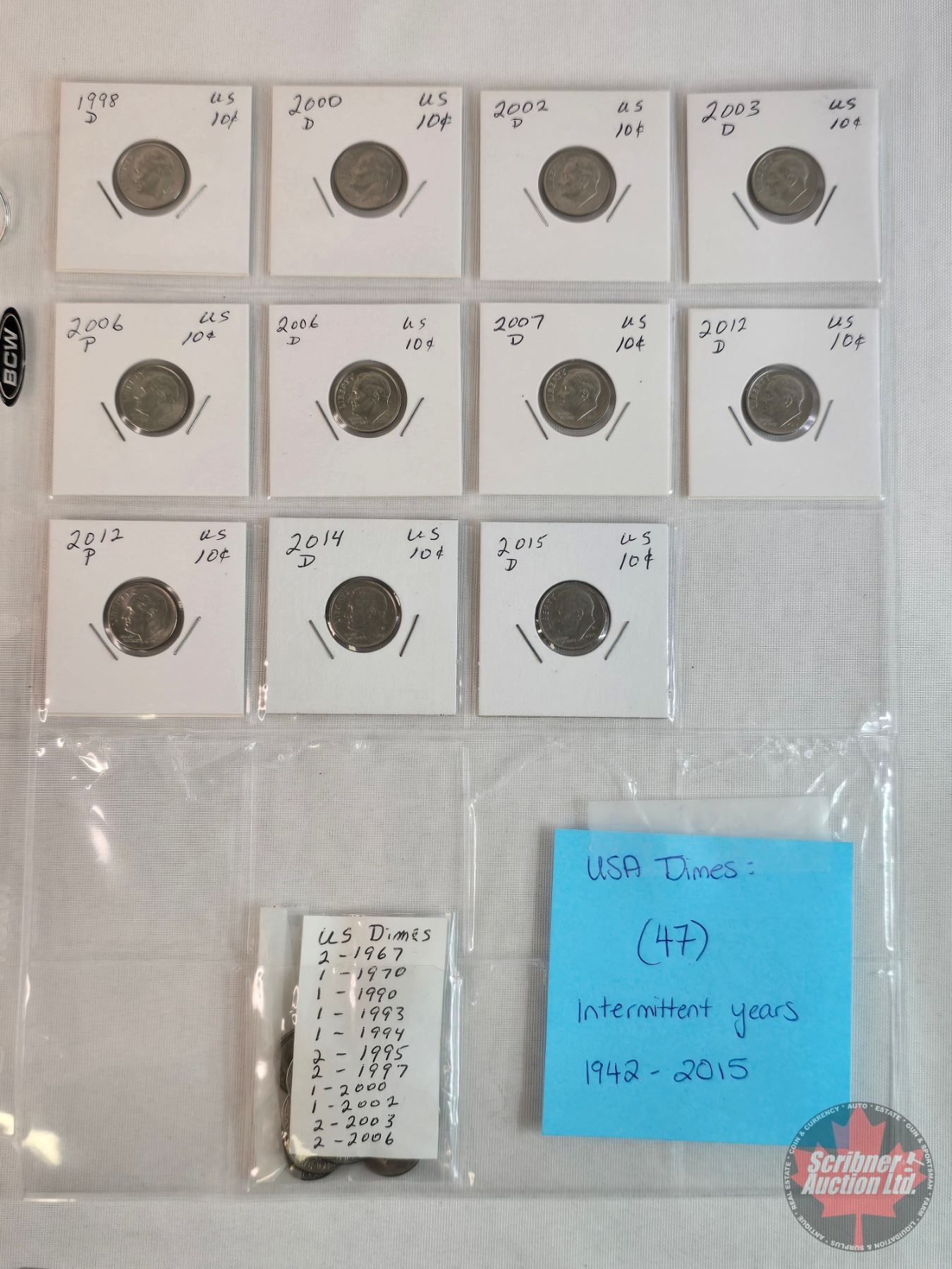 USA Dime Collection (47) : Intermittent Ranging 1942-2015 (SEE PICS!) (Listing & Descriptions are a GUIDE ONLY and are subject to changes, errors, additions or deletions. Please use the provided pictures to satisfy yourself to the Condition and/or Grades. Please Read & Understand All Terms & Conditions for this Auction Sale.)