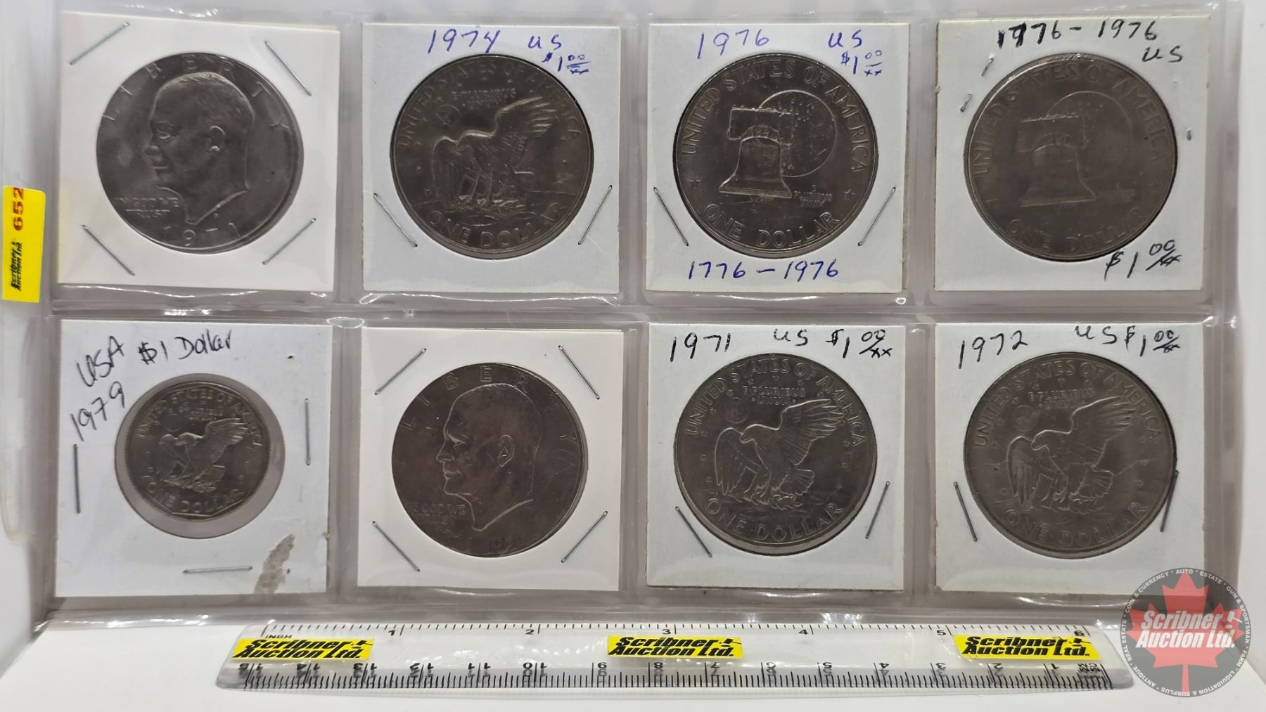 USA Dollars (8): 1971; 1974; 1976; 1976; 1979; 1976; 1971; 1972 (SEE PICS!) (Listing & Descriptions are a GUIDE ONLY and are subject to changes, errors, additions or deletions. Please use the provided pictures to satisfy yourself to the Condition and/or Grades. Please Read & Understand All Terms & Conditions for this Auction Sale.)