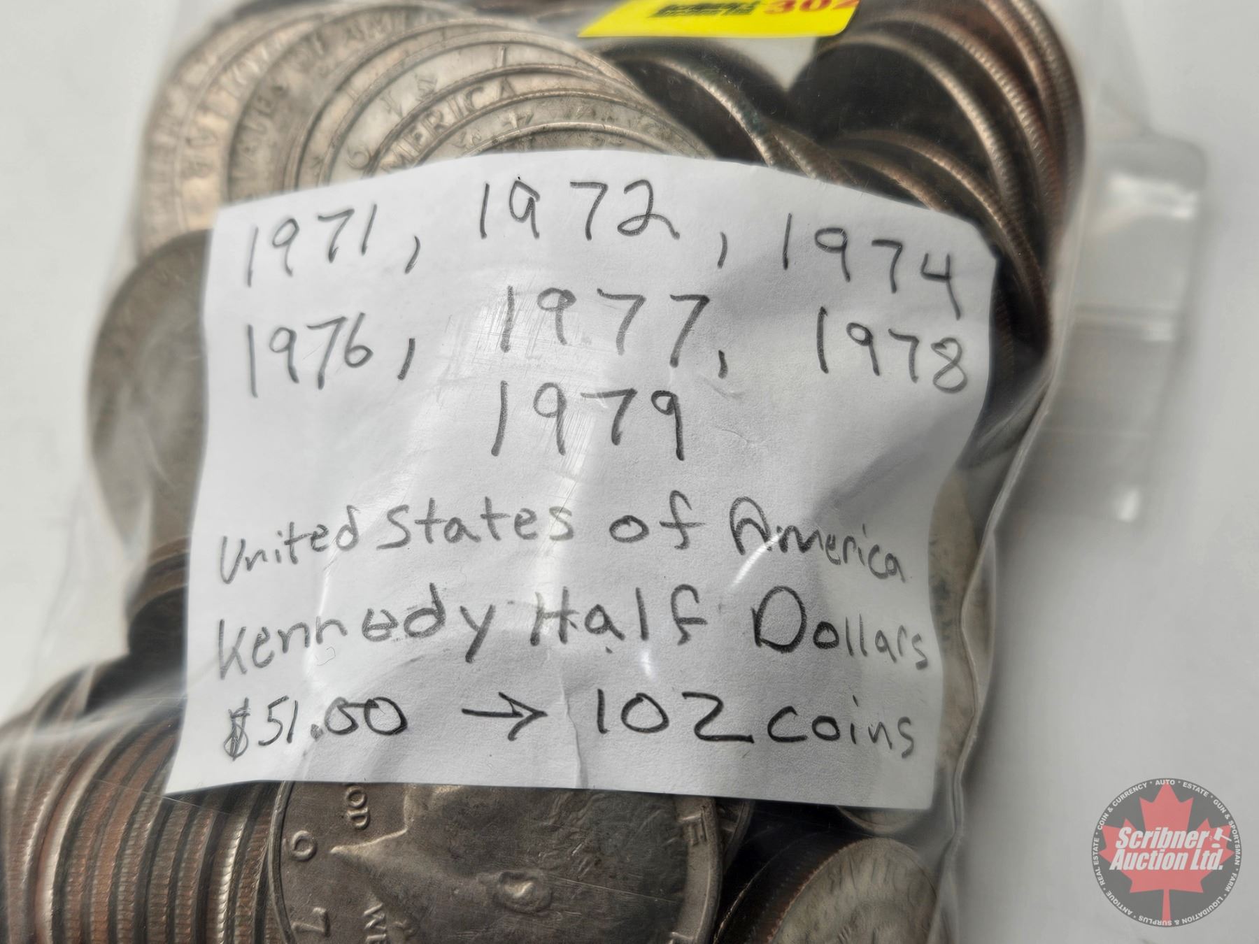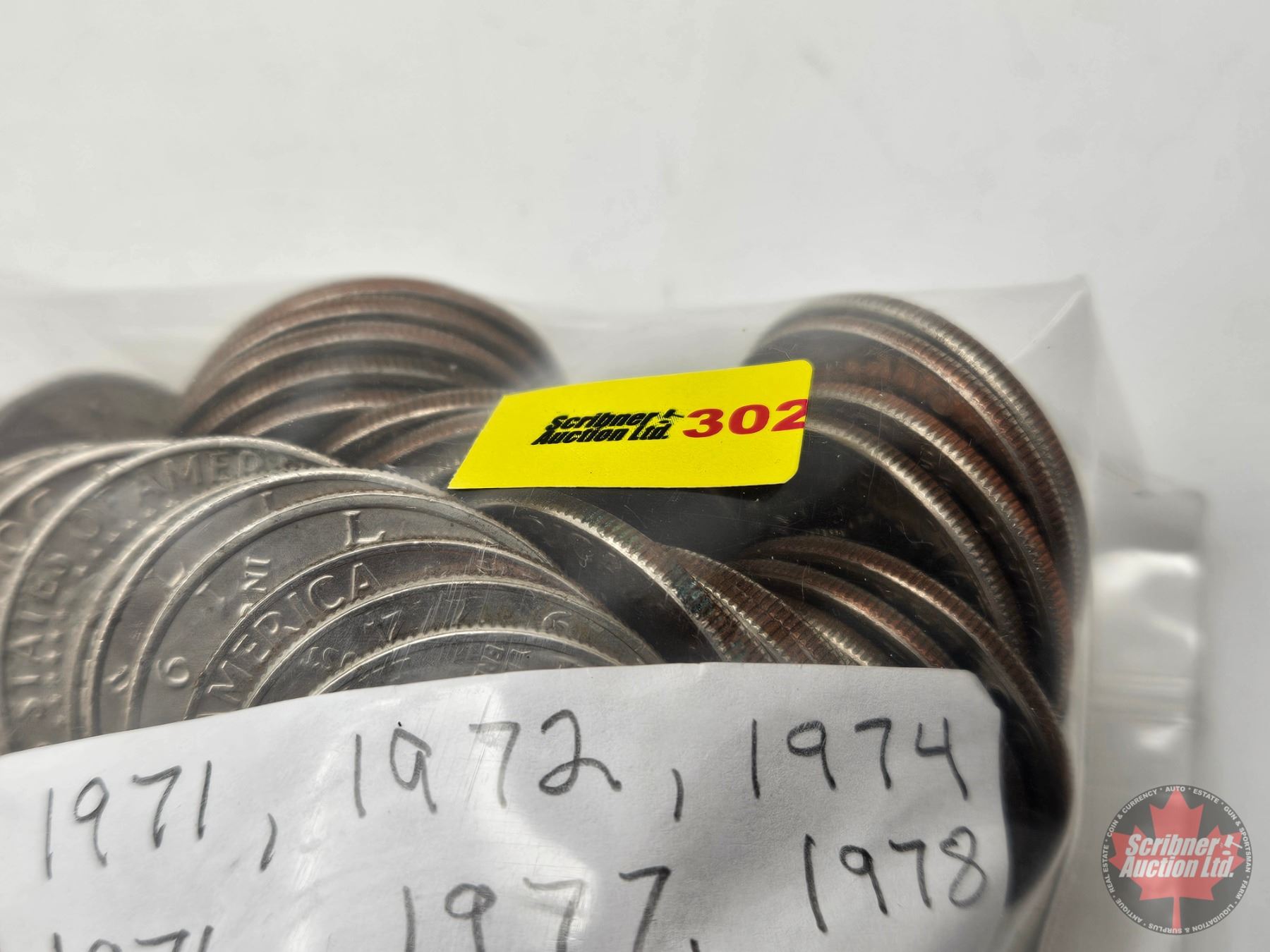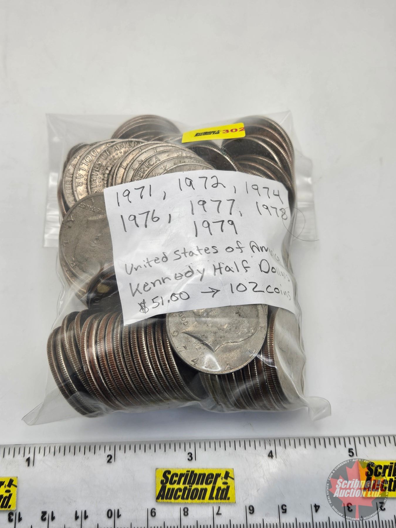 USA Half Dollars (100 + Coins) : 1971, 1972, 1974, 1976, 1977, 1978, 1979 (Bag)