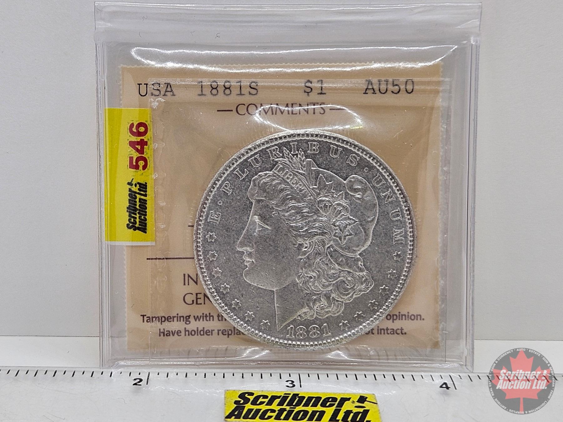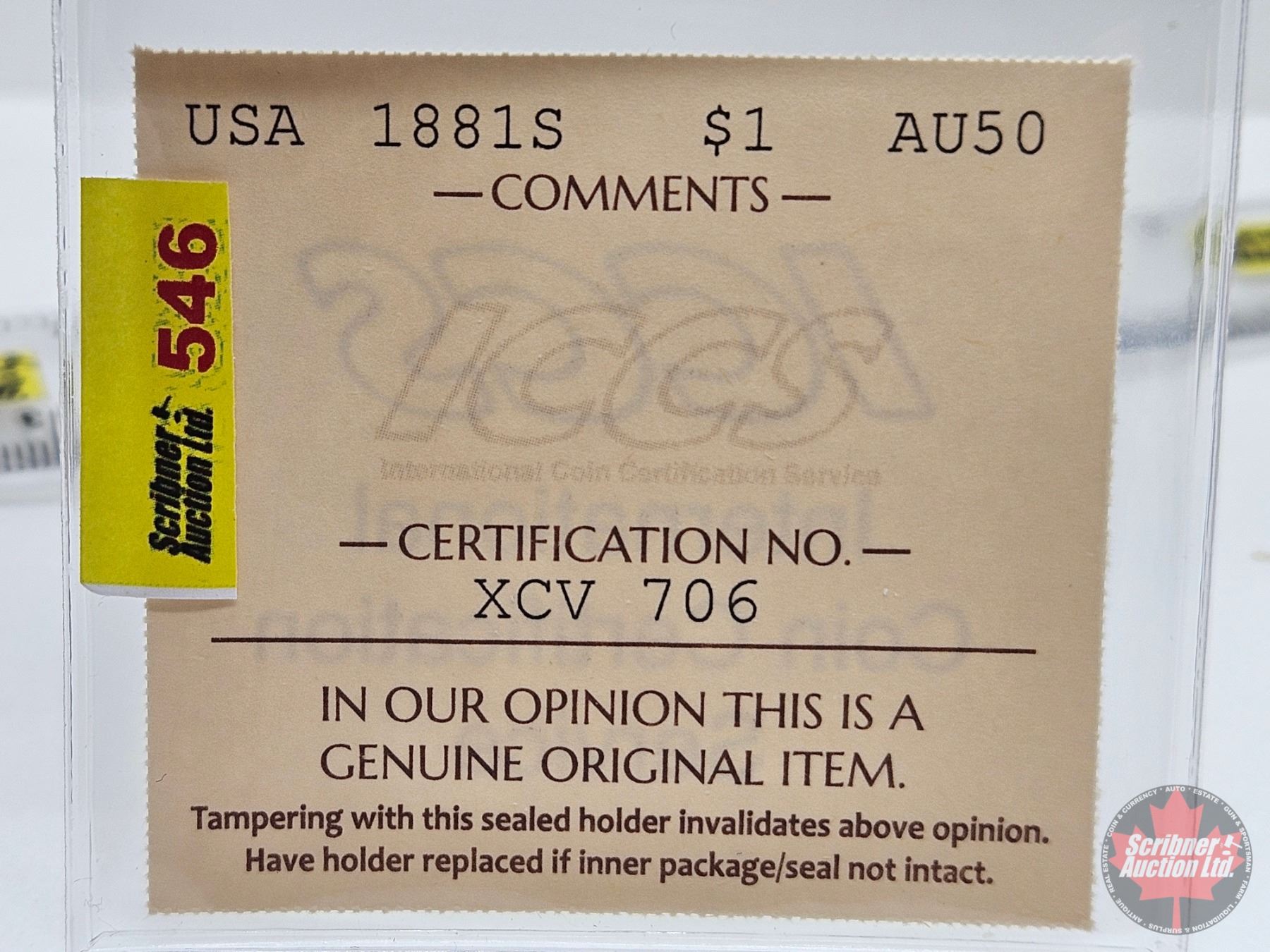 USA Morgan Dollar 1881S (ICCS Cert : AU50)