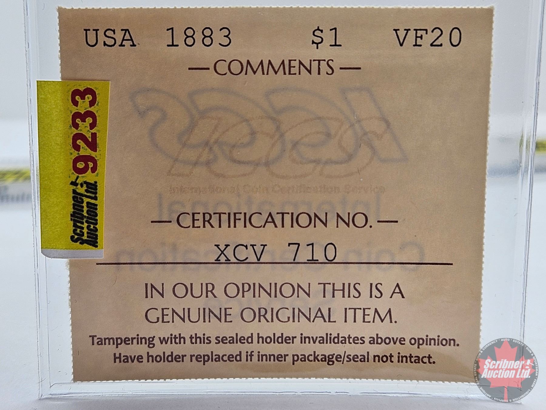 Firearm, Coin & Currency Grades are not the opinion of Scribner Auction Ltd. or any of Scribner Auction Ltd. representatives.