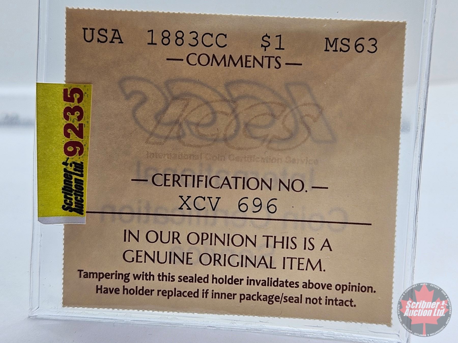 Firearm, Coin & Currency Grades are not the opinion of Scribner Auction Ltd. or any of Scribner Auction Ltd. representatives.
