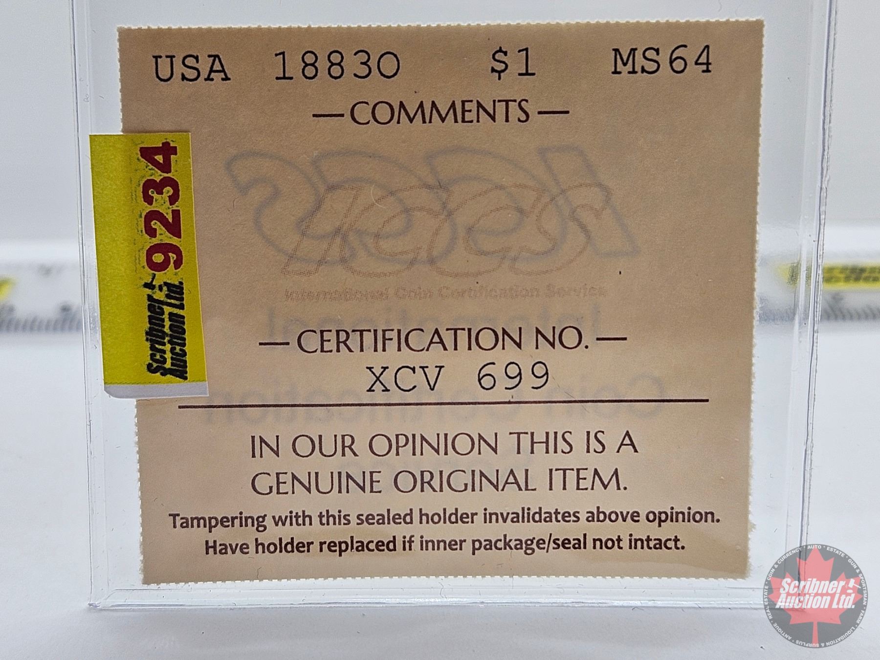 Firearm, Coin & Currency Grades are not the opinion of Scribner Auction Ltd. or any of Scribner Auction Ltd. representatives.
