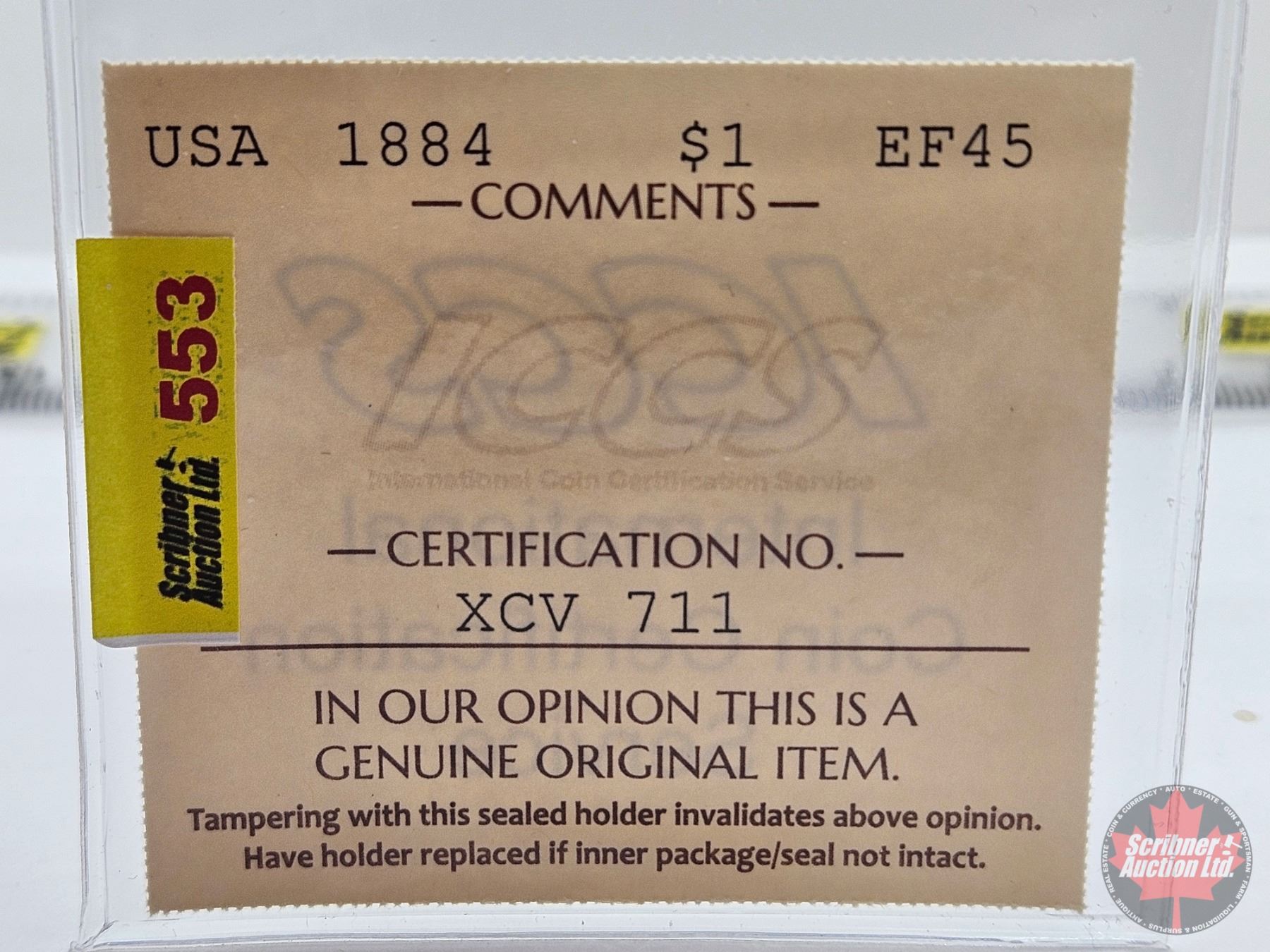 Firearm, Coin & Currency Grades are not the opinion of Scribner Auction Ltd. or any of Scribner Auction Ltd. representatives.
