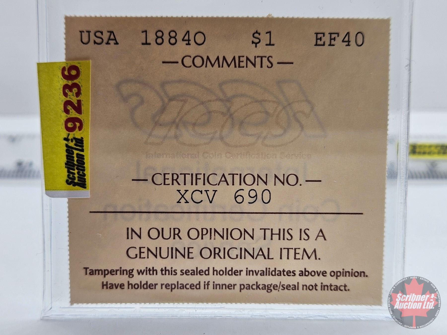 USA Morgan Dollar 1884O (ICCS Cert : EF40)