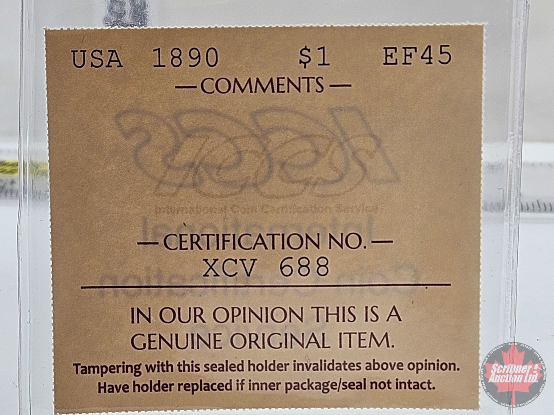 USA Morgan Dollar 1890 (ICCS Cert : EF45)
