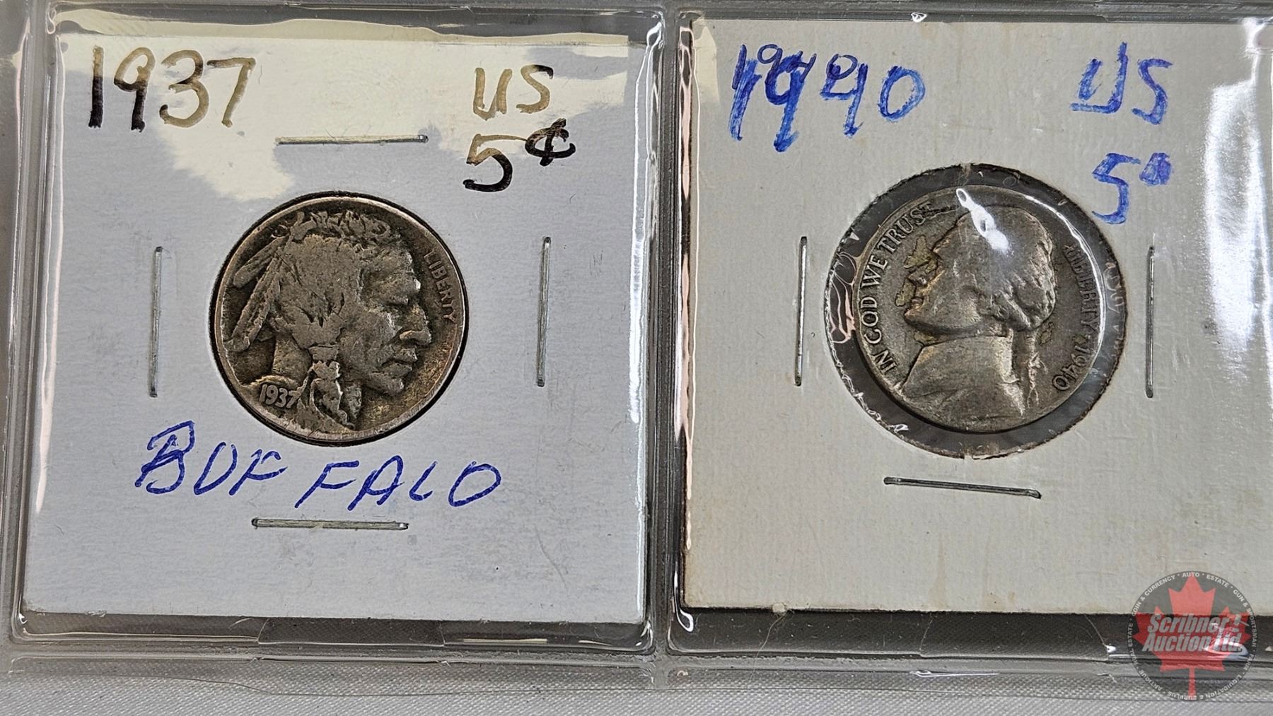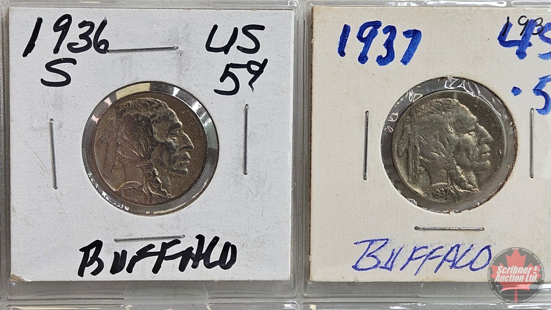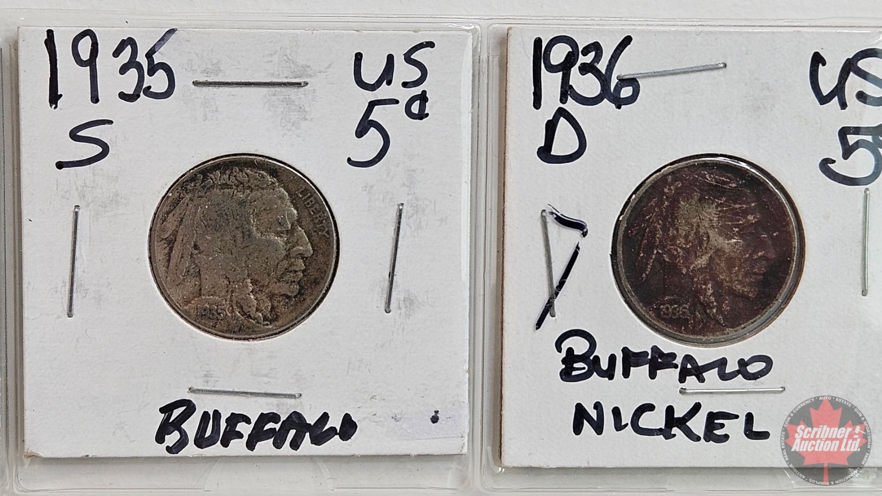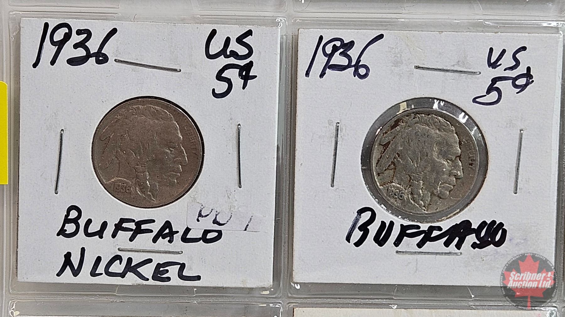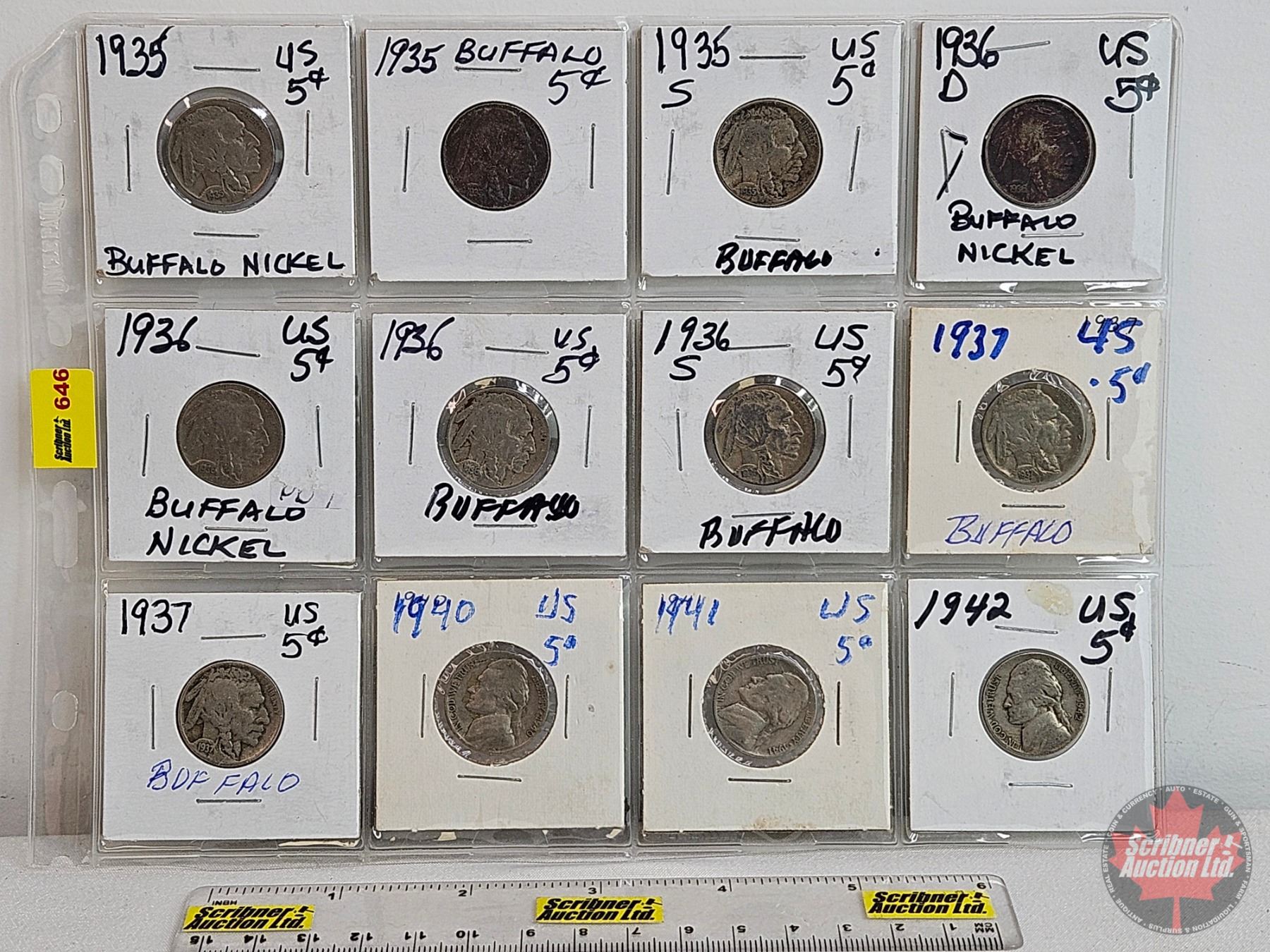 USA Nickels (12) : 1935; 1935; 1935S; 1936D; 1936; 1936; 1936S; 1937; 1937; 1940; 1941; 1942