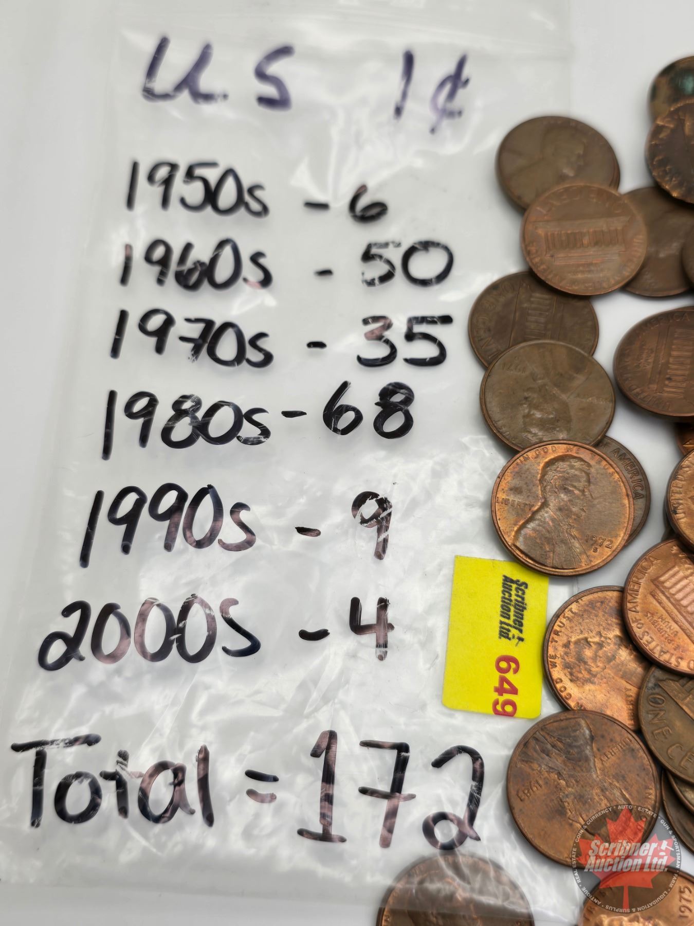 USA One Cent Collection (170+ Coins) : 1950's ; 1960's; 1970's ; 1980's; 1990's ; 2000's (SEE PICS!) (Listing & Descriptions are a GUIDE ONLY and are subject to changes, errors, additions or deletions. Please use the provided pictures to satisfy yourself to the Condition and/or Grades. Please Read & Understand All Terms & Conditions for this Auction Sale.)