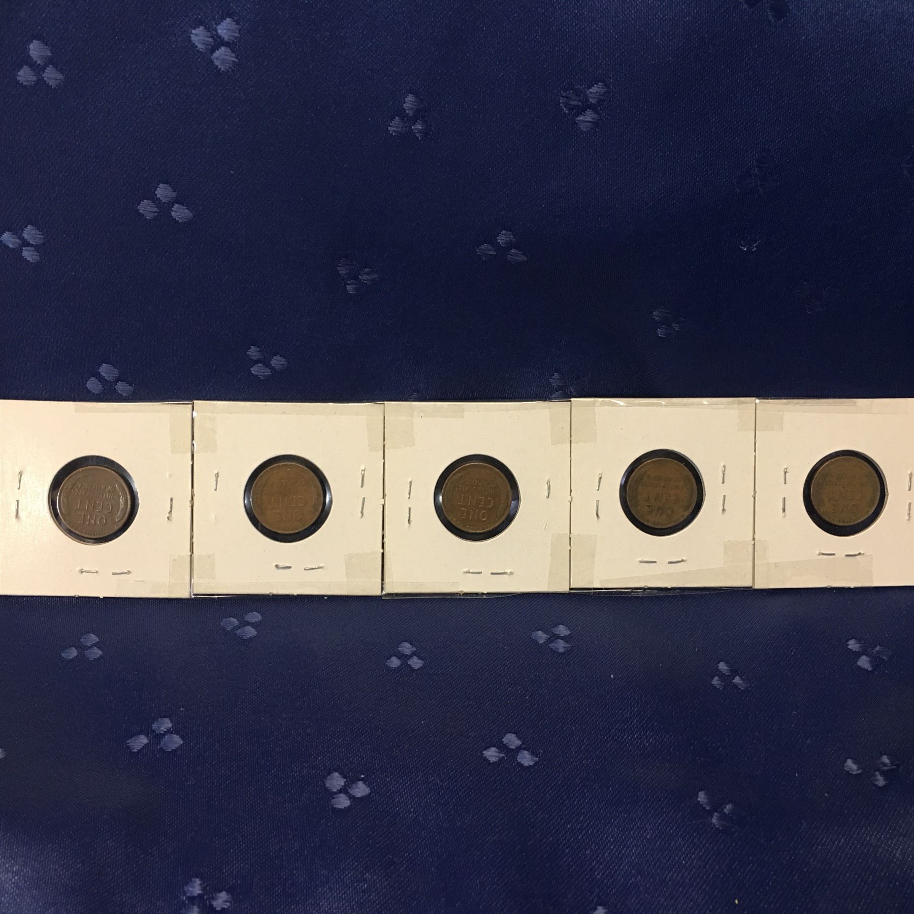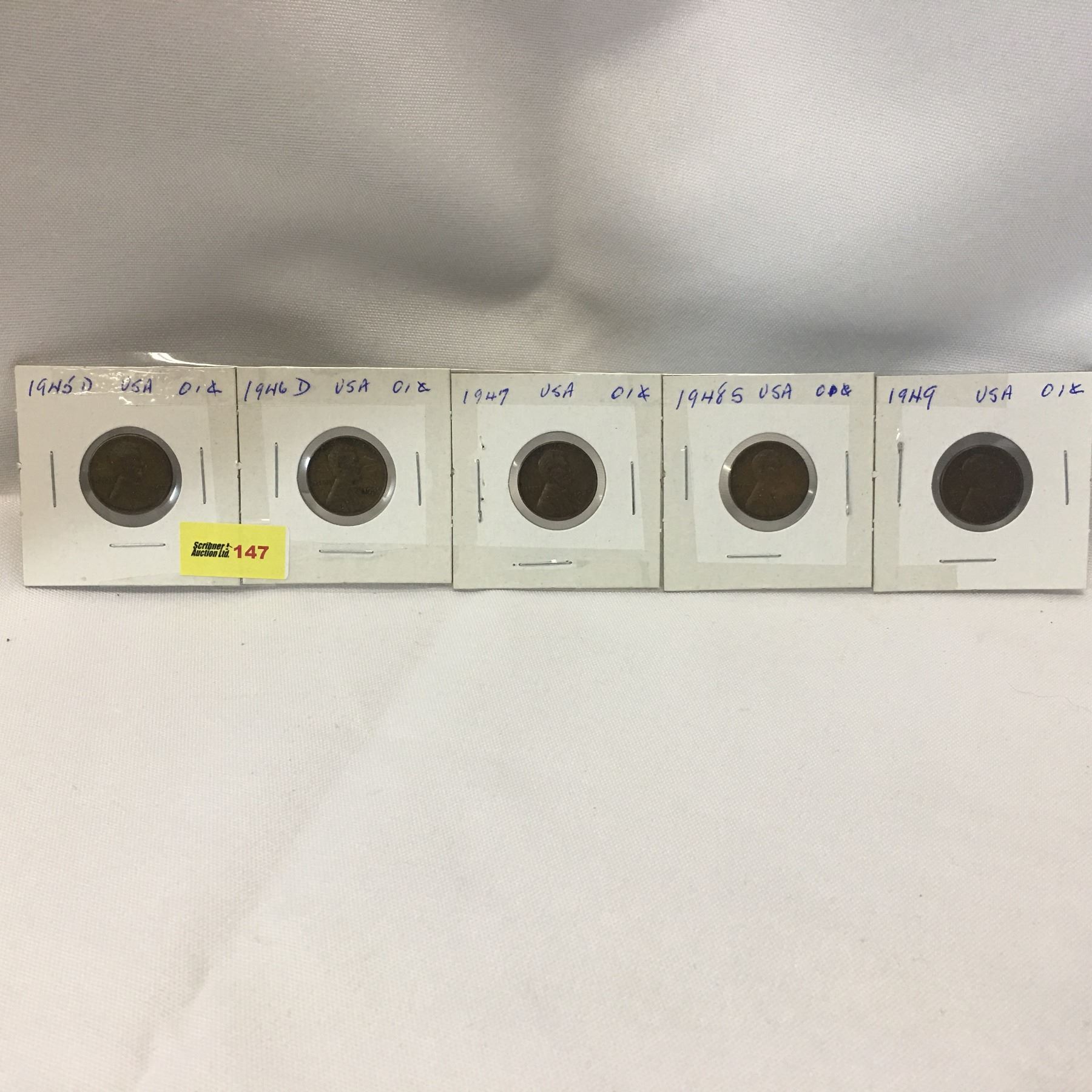 USA One Cent - Set of 5: 1945D; 1946D; 1947; 1948S; 1949