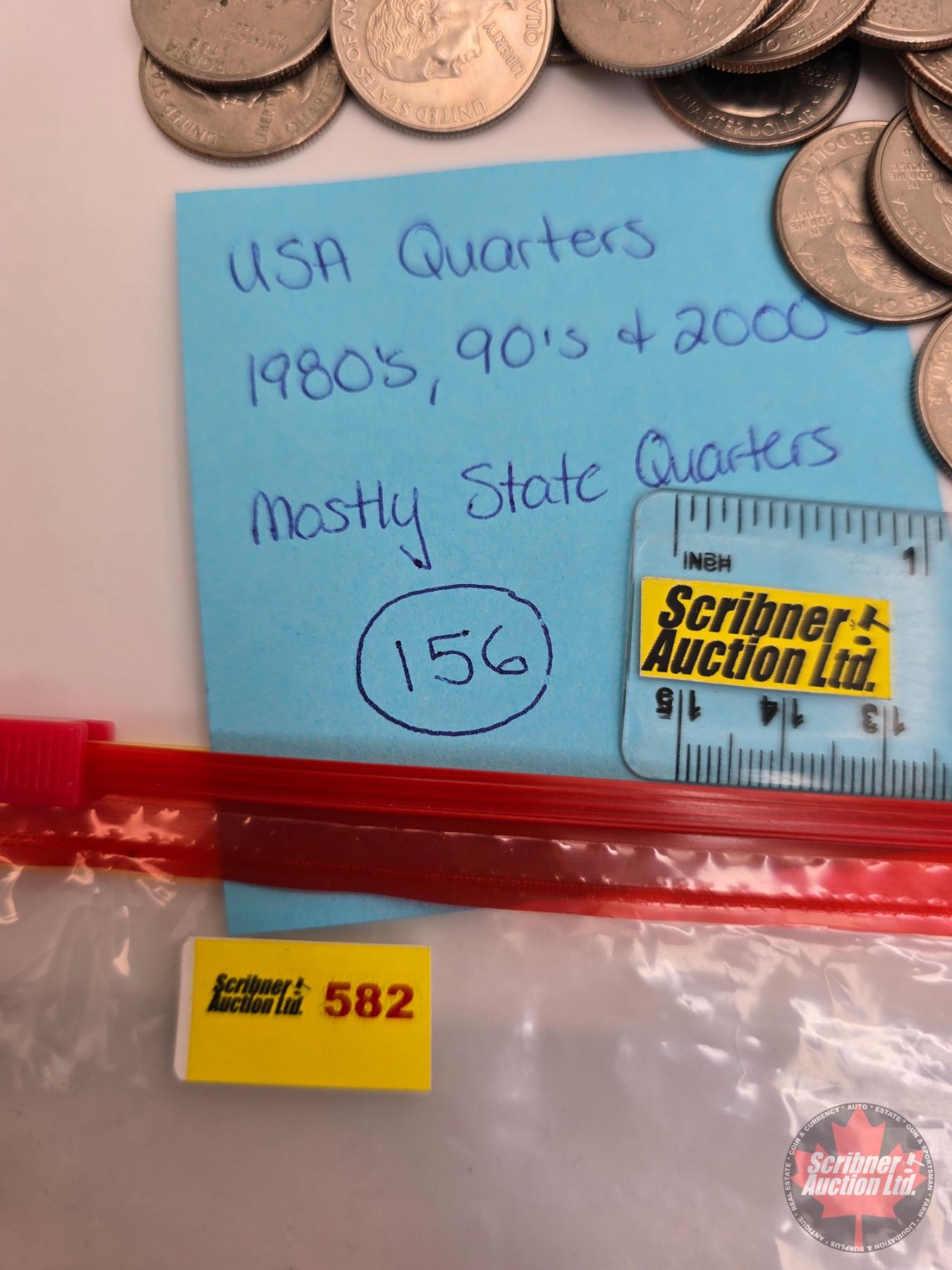 USA Quarters (150+) Variety : Ranging 1980's ; 1990's; 2000's (Mostly State Quarters) (SEE PICS!) (Listing & Descriptions are a GUIDE ONLY and are subject to changes, errors, additions or deletions. Please use the provided pictures to satisfy yourself to the Condition and/or Grades. Please Read & Understand All Terms & Conditions for this Auction Sale.)