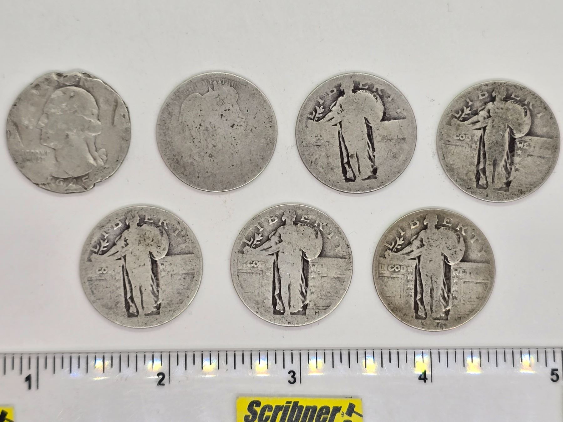 USA Quarters "Eagle" (7) : Variety (Dates Not Visible ~ Range Late 1800's - Early 1900's) (SEE PICS!) (Listing & Descriptions are a GUIDE ONLY and are subject to changes, errors, additions or deletions. Please use the provided pictures to satisfy yourself to the Condition and/or Grades. Please Read & Understand All Terms & Conditions for this Auction Sale.)