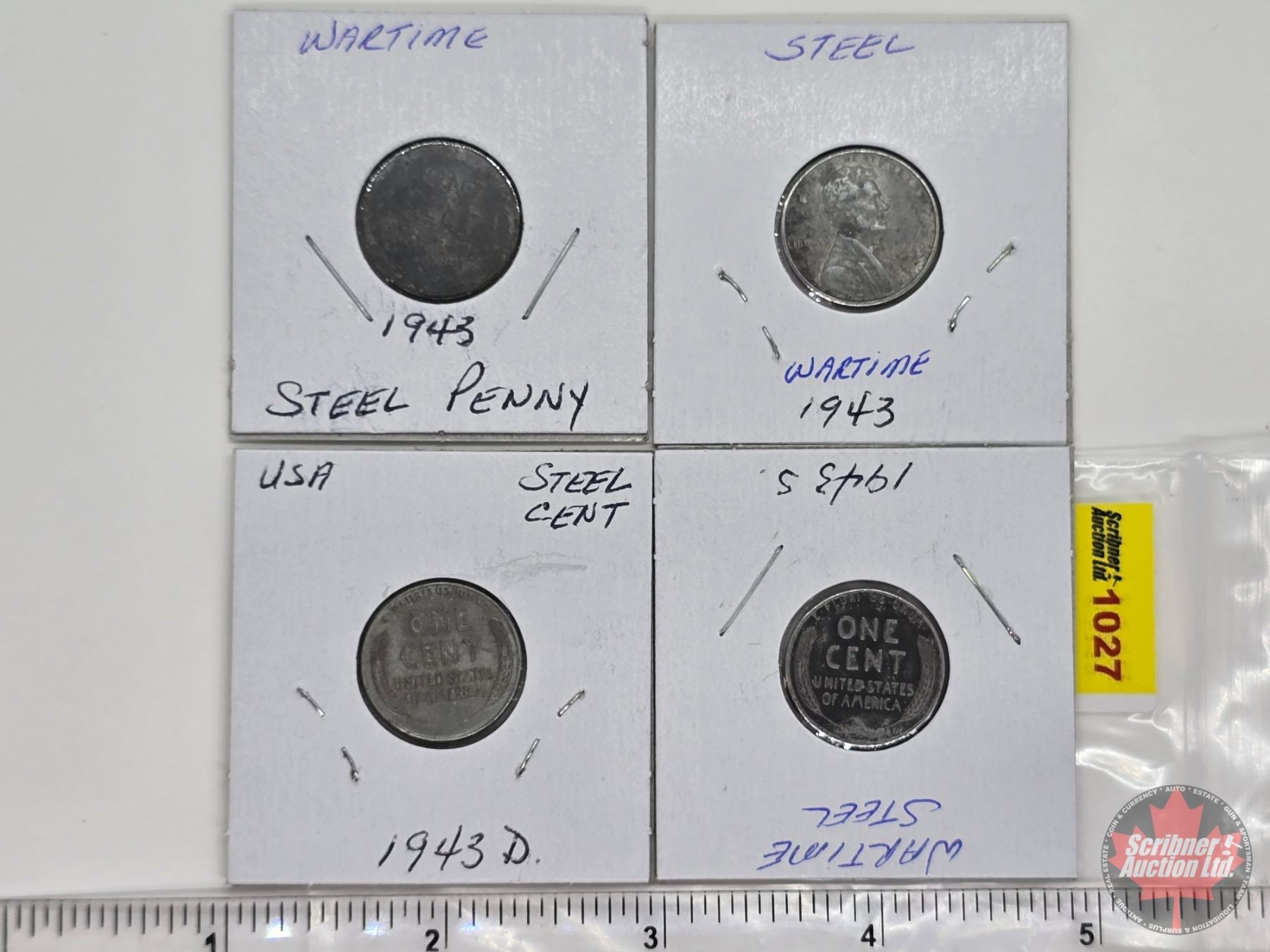 USA Steel Cents (4) : 1943; 1943S; 1943D; 1943 (SEE PICS!)