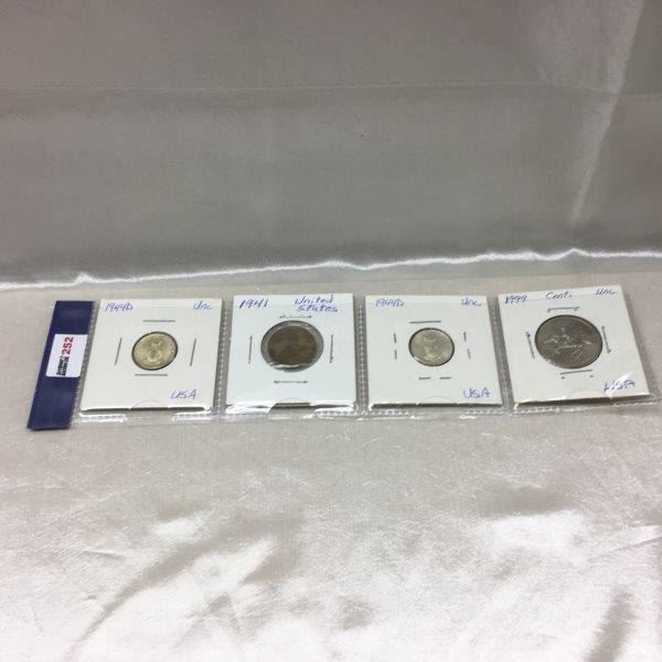 1944D Ten Cent (2); 1941 One Cent; 1999 Twenty Five Cent