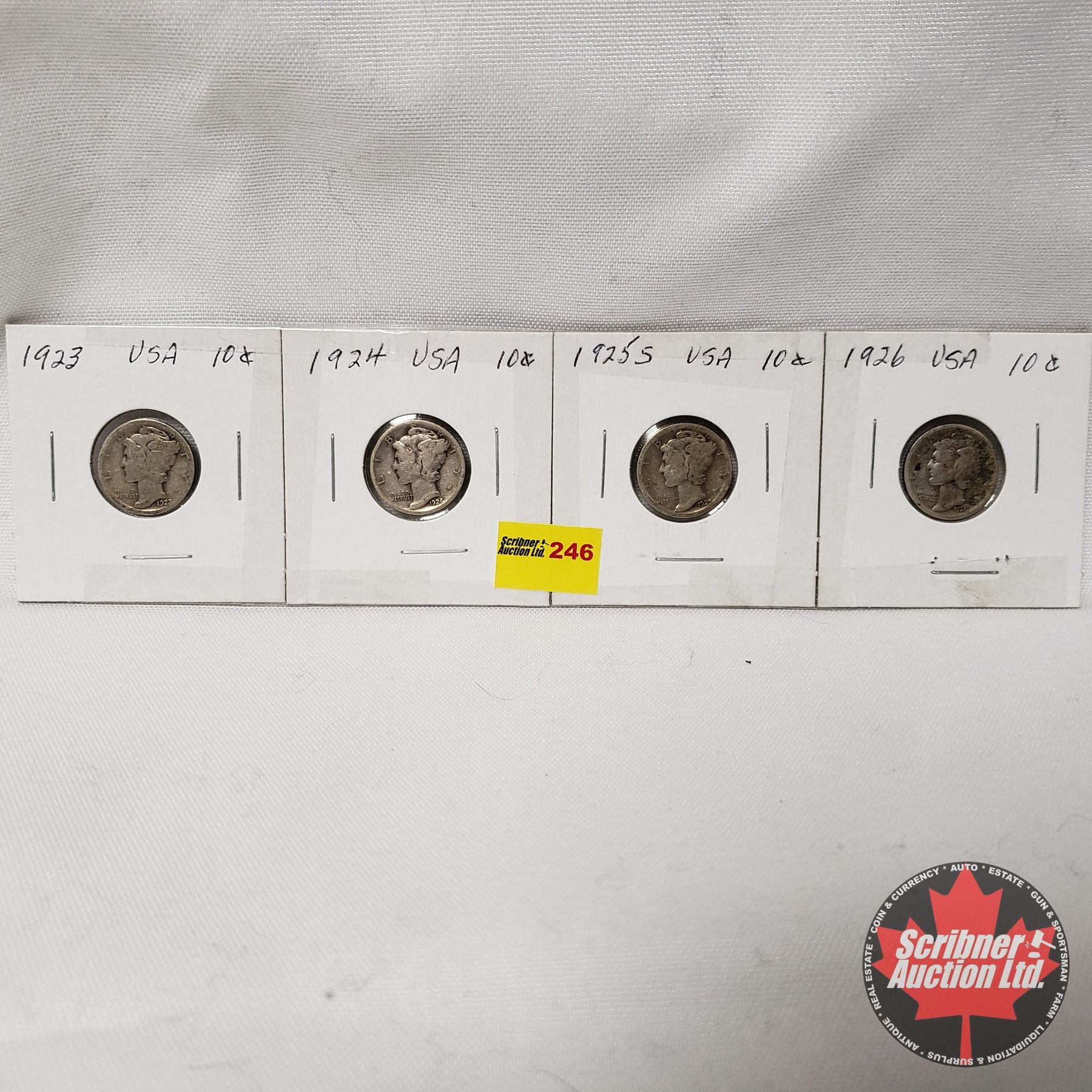 USA Ten Cent - Strip of 4: 1923; 1924; 1925S; 1926