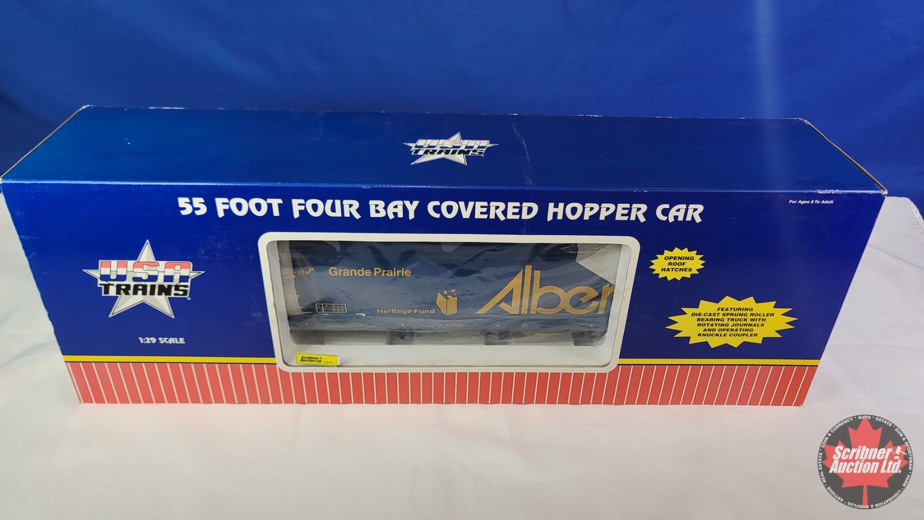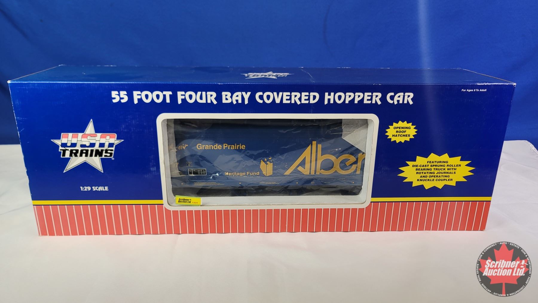 USA Trains : ALBERTA ALNX 396197 "Heritage Fund Grand Prairie" 55ft Four Bay Covered Hopper Car (R14126I) (Scale 1:29)