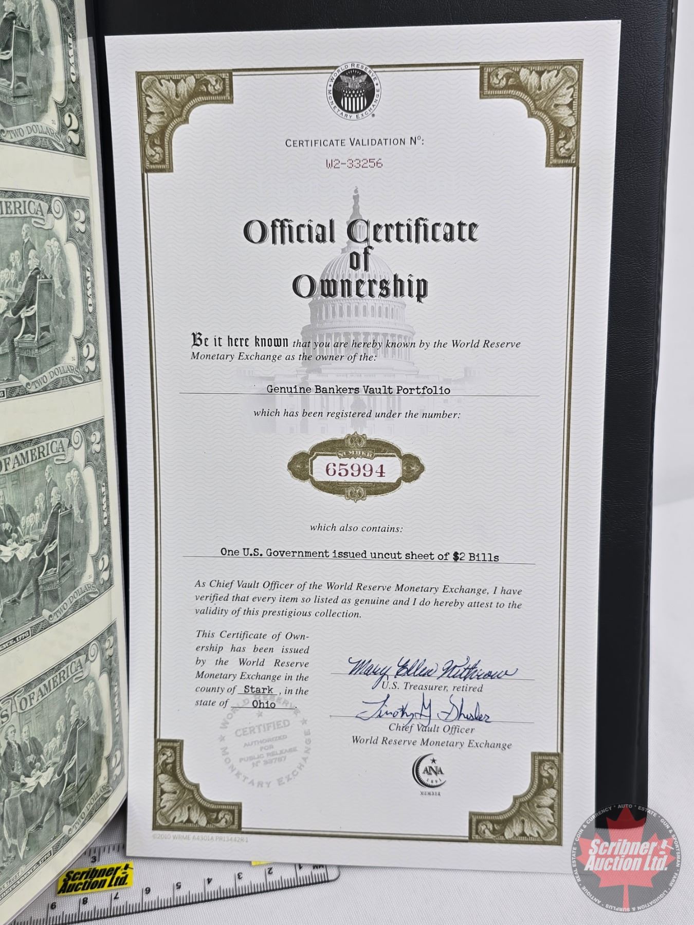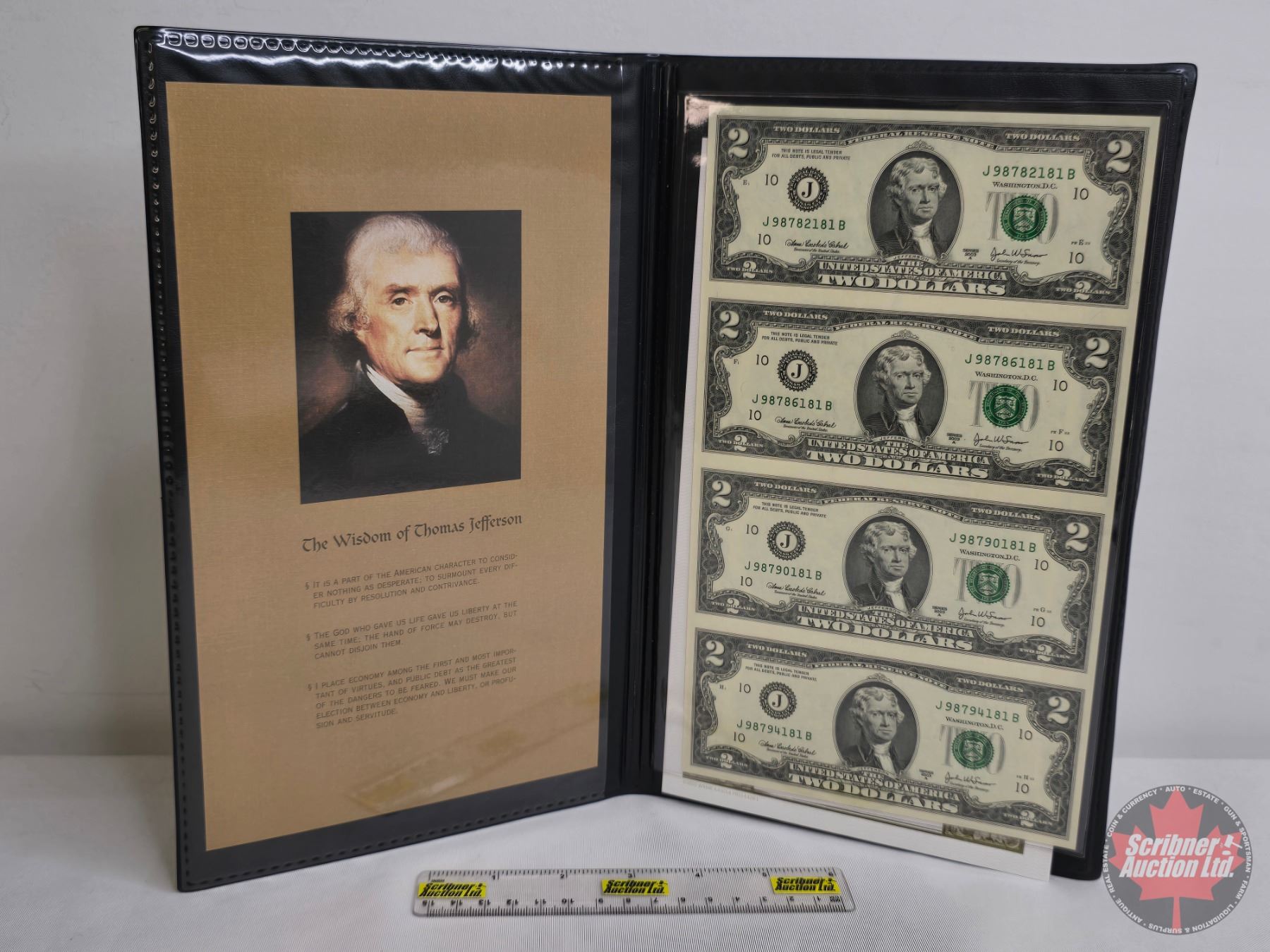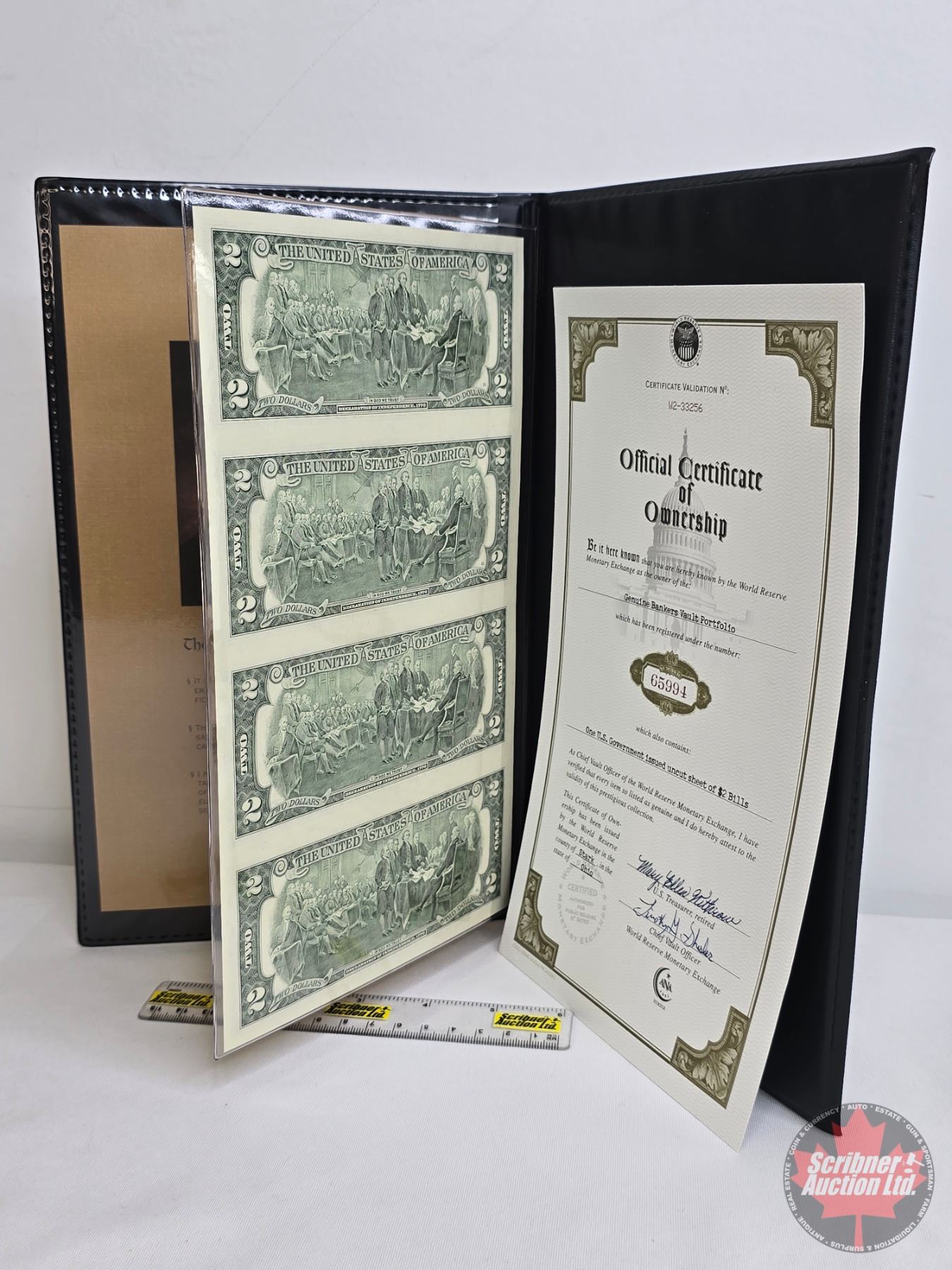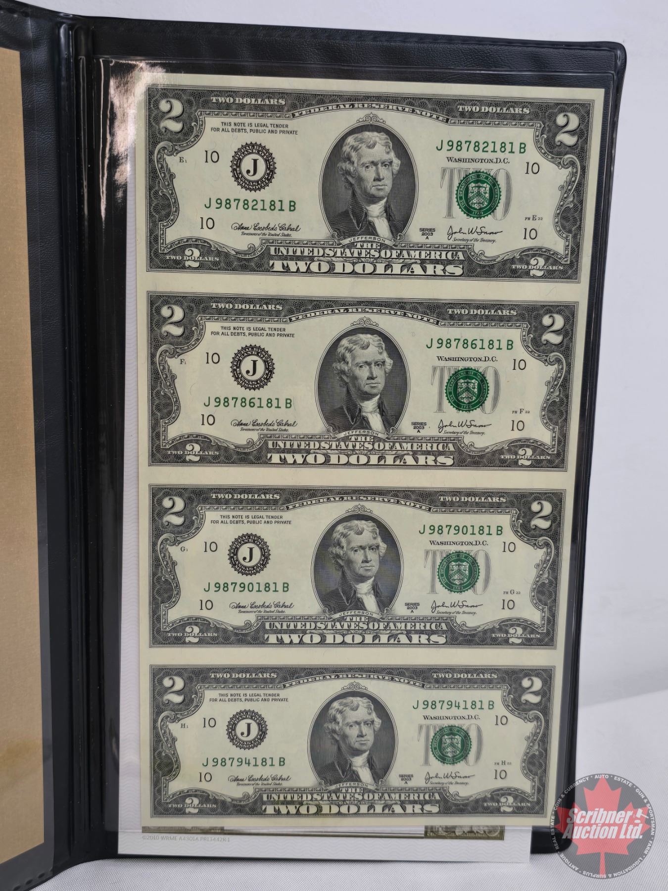 USA World Reserve Monetary Exchange : Portfolio Set of (4) Uncut 2003 $2 Dollar Bills Sheet #J98782181B-86181B-90181B-94181B (See Pics for Varieties, Conditions, Serial Numbers, Printing Dates & Signatures) (Listing & Descriptions are a GUIDE ONLY and are subject to changes, errors, additions or deletions. Please use the provided pictures to satisfy yourself to the Condition and/or Grades. Please Read & Understand All Terms & Conditions for this Auction Sale.)