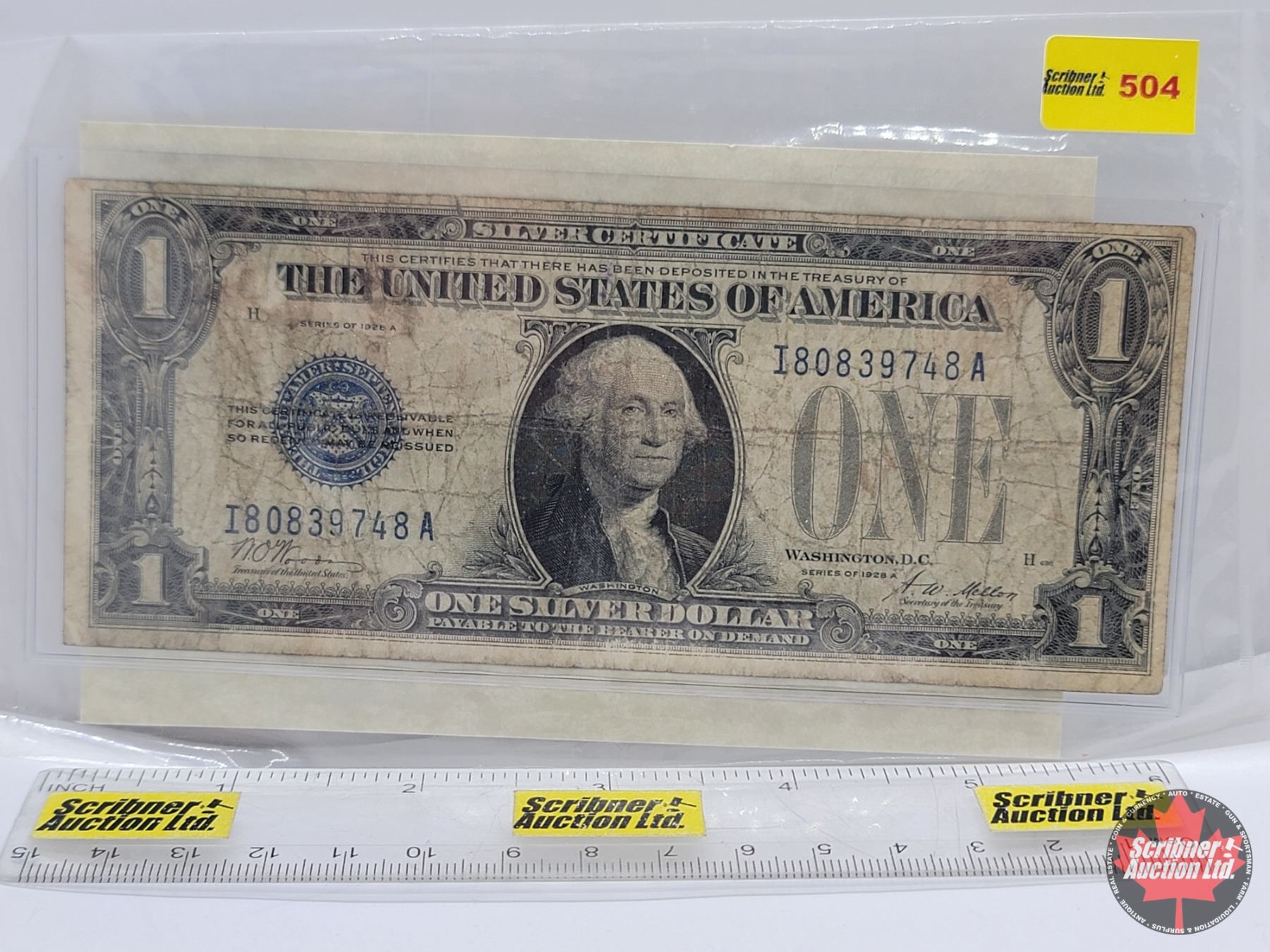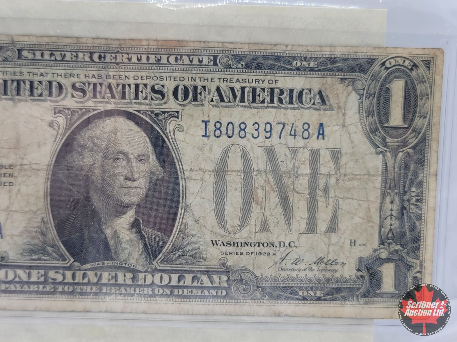 United States 1928 $1 Bill Silver Certificate: S/N#I80839748A (Sealed with COA) (SEE PICS!)
