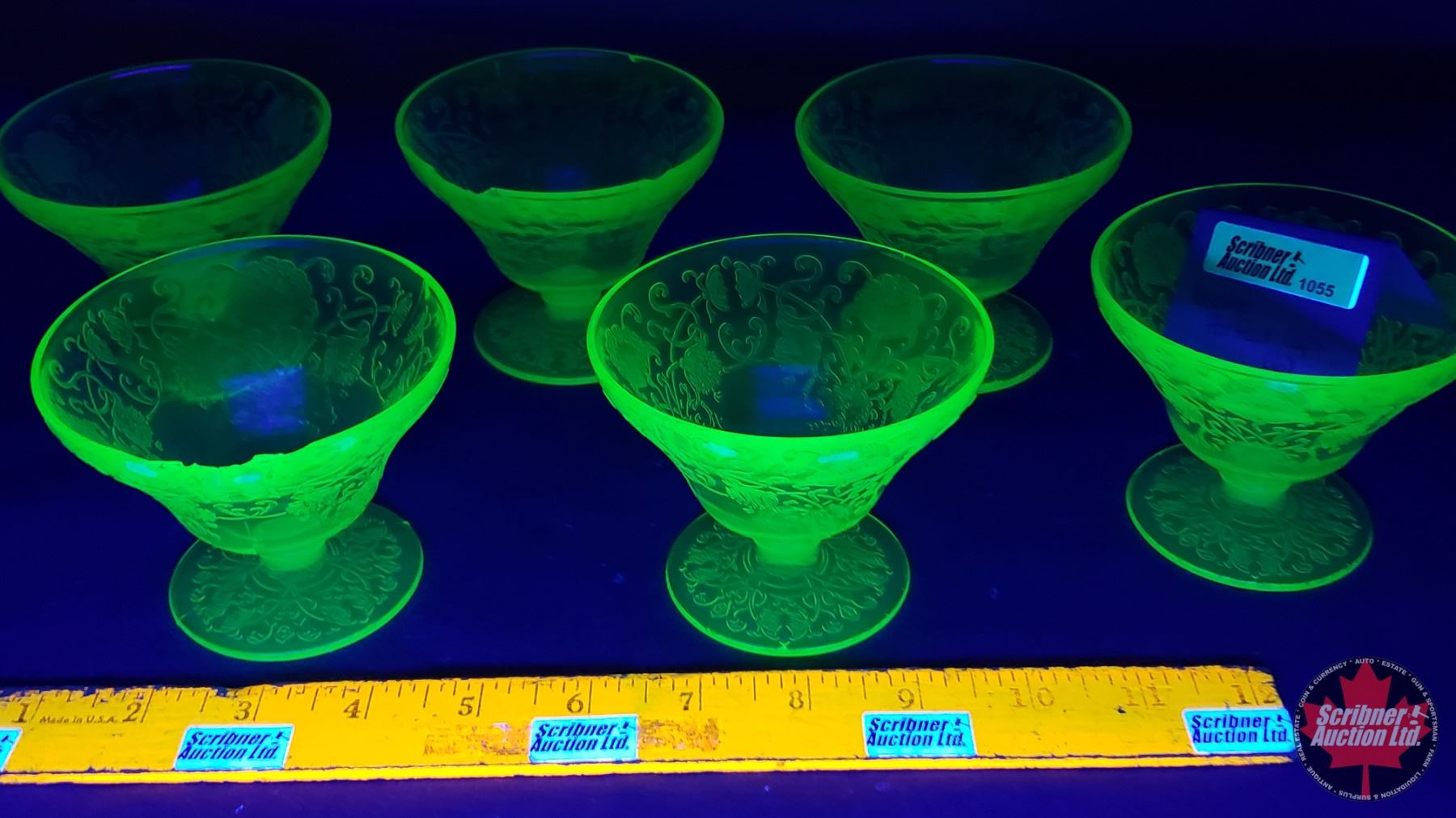 Uranium Glass : (6) Sherbet-Parfait Dessert Bowls (3"H) (Note: 3 are chipped) (SEE PICS!)