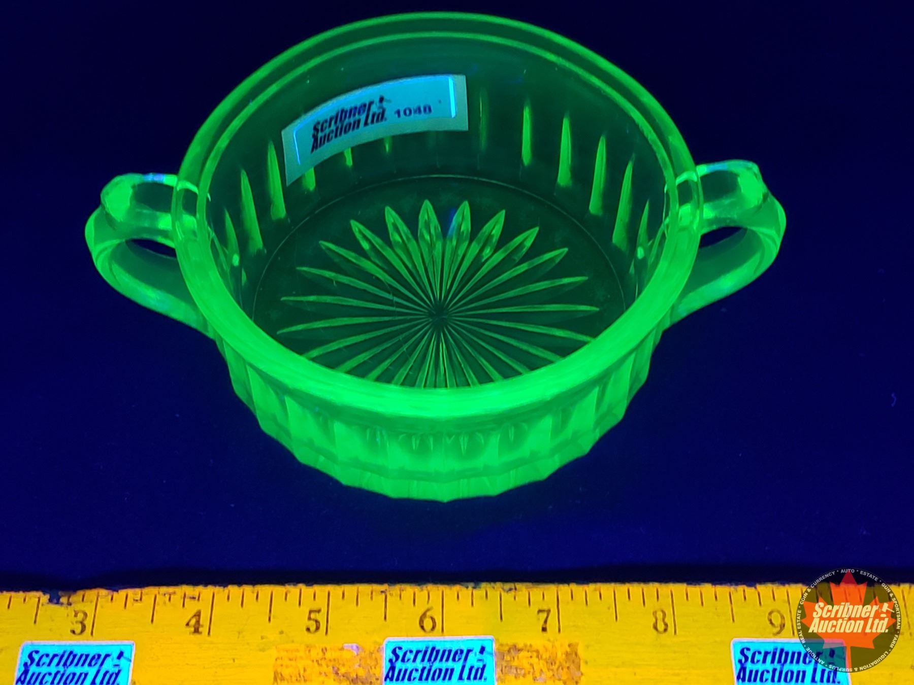 Uranium Glass : Double Handled Bowl (2"H x 4-3/4"Dia) (SEE PICS!)
