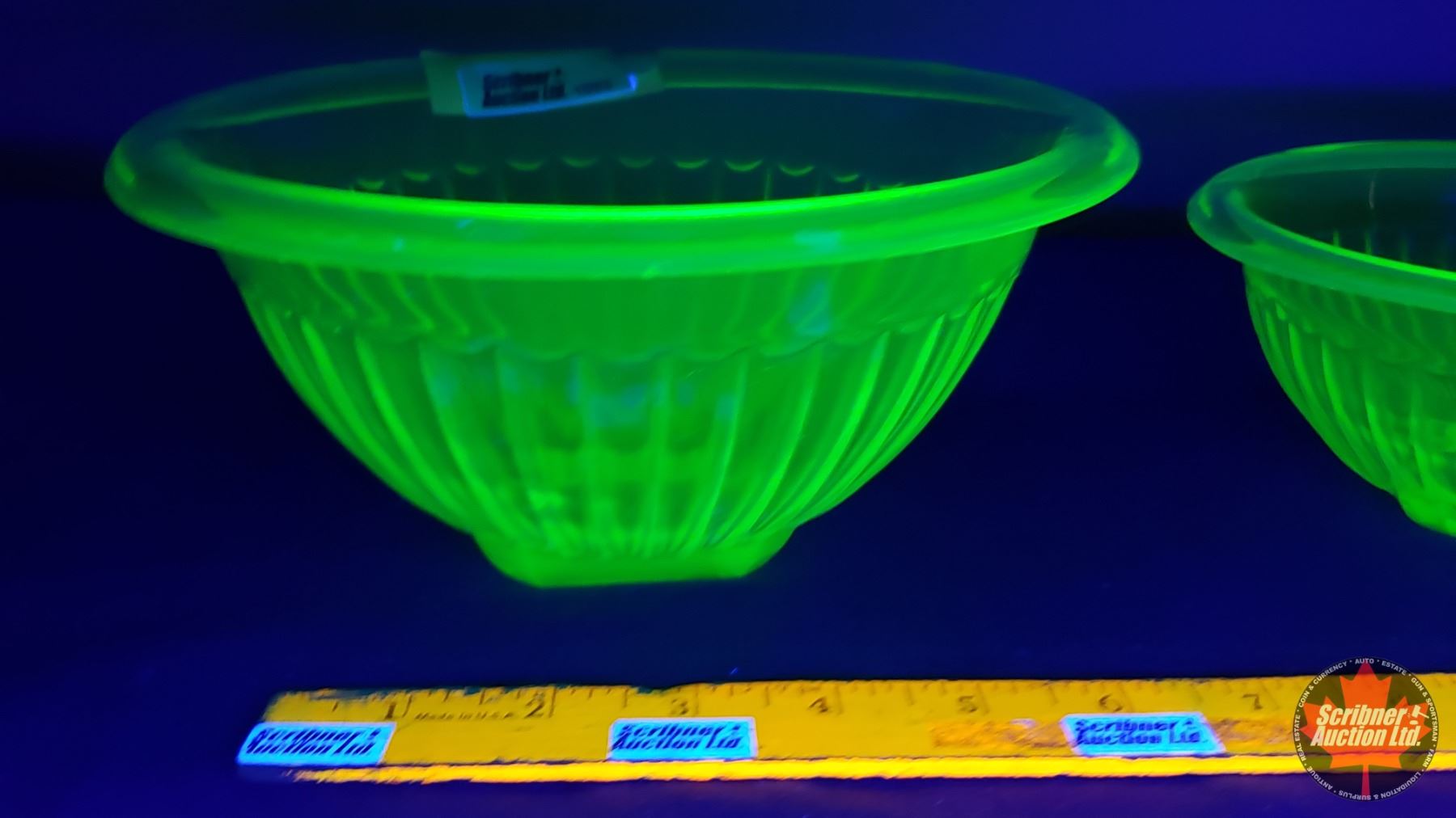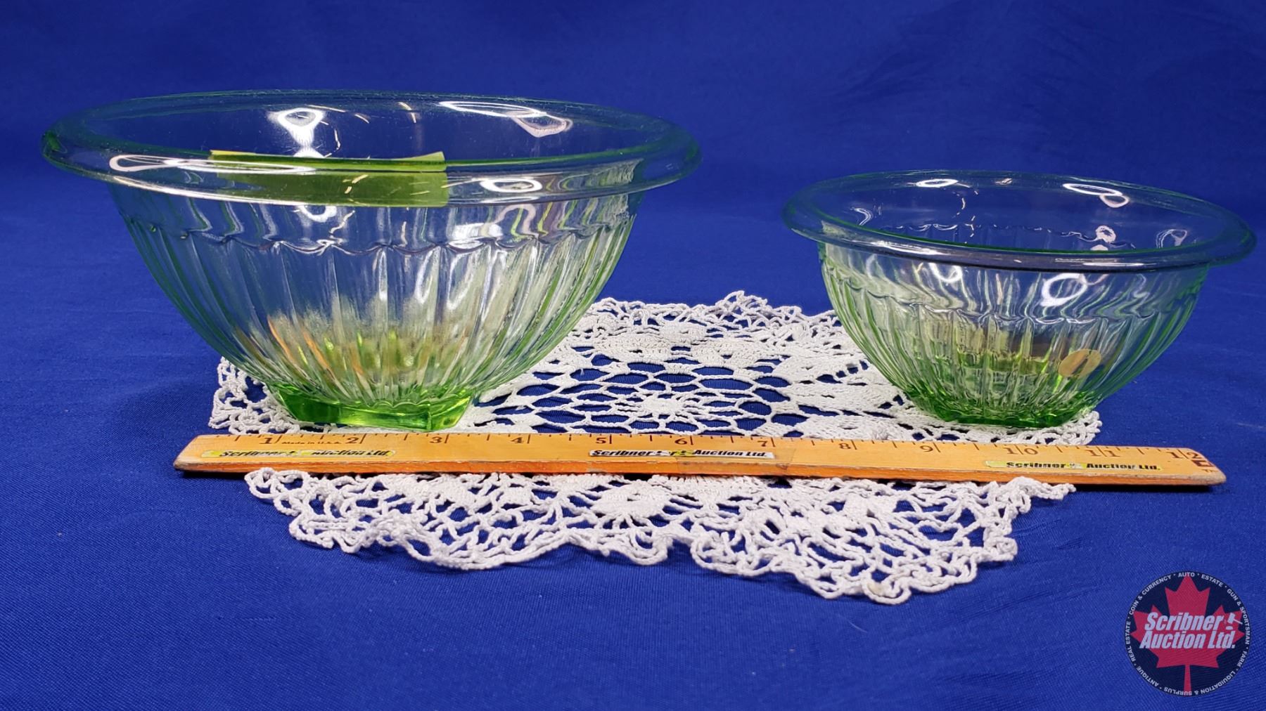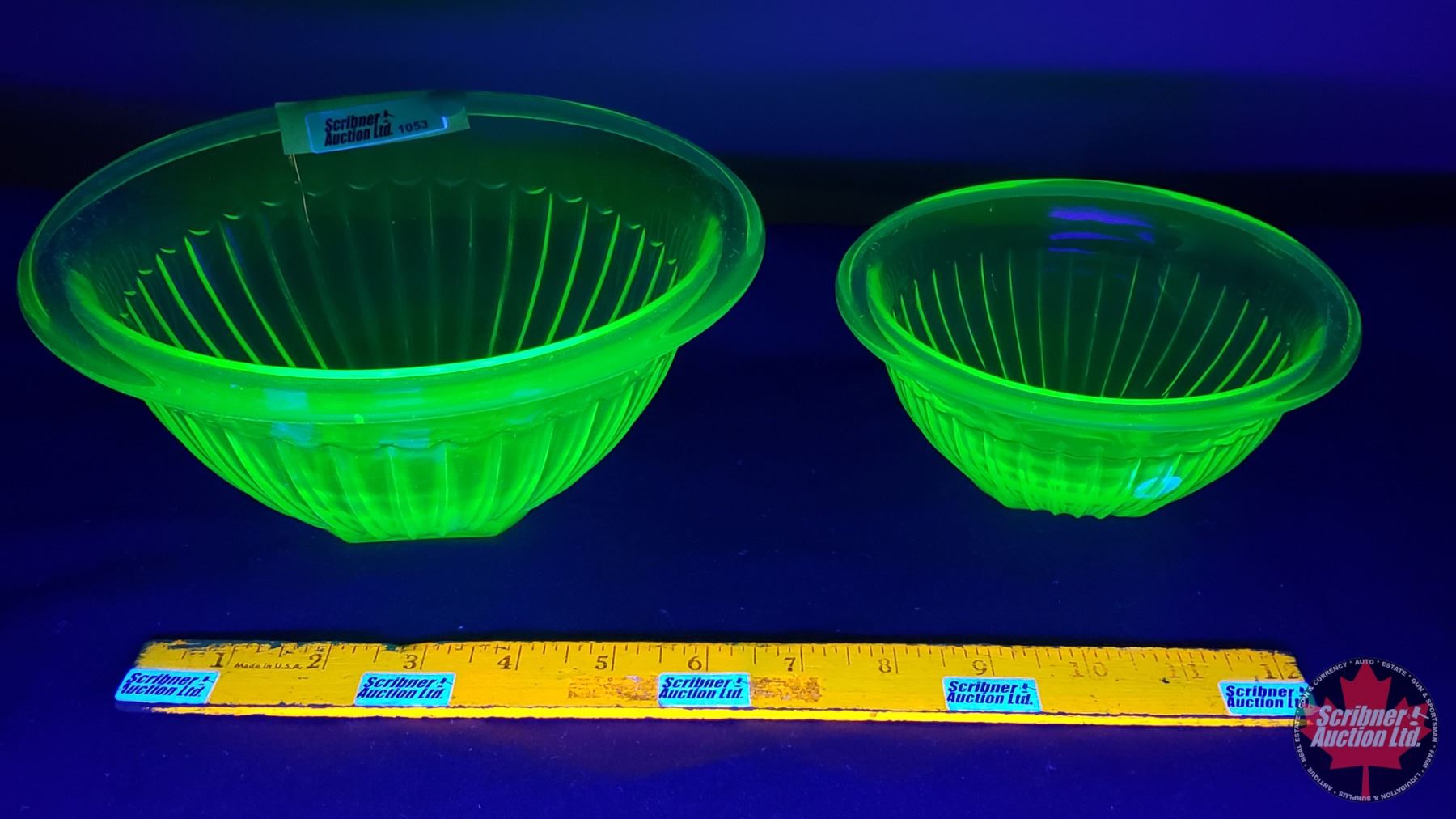 Uranium Glass : Mixing Bowls (2) (Largest 4"H x 8-1/4"Dia) (SEE PICS!)