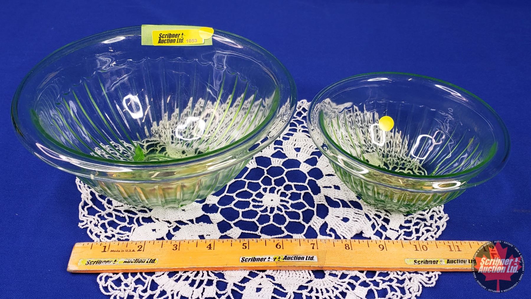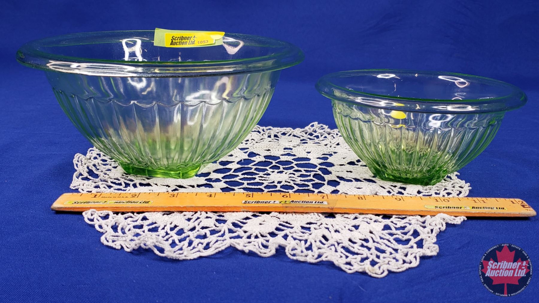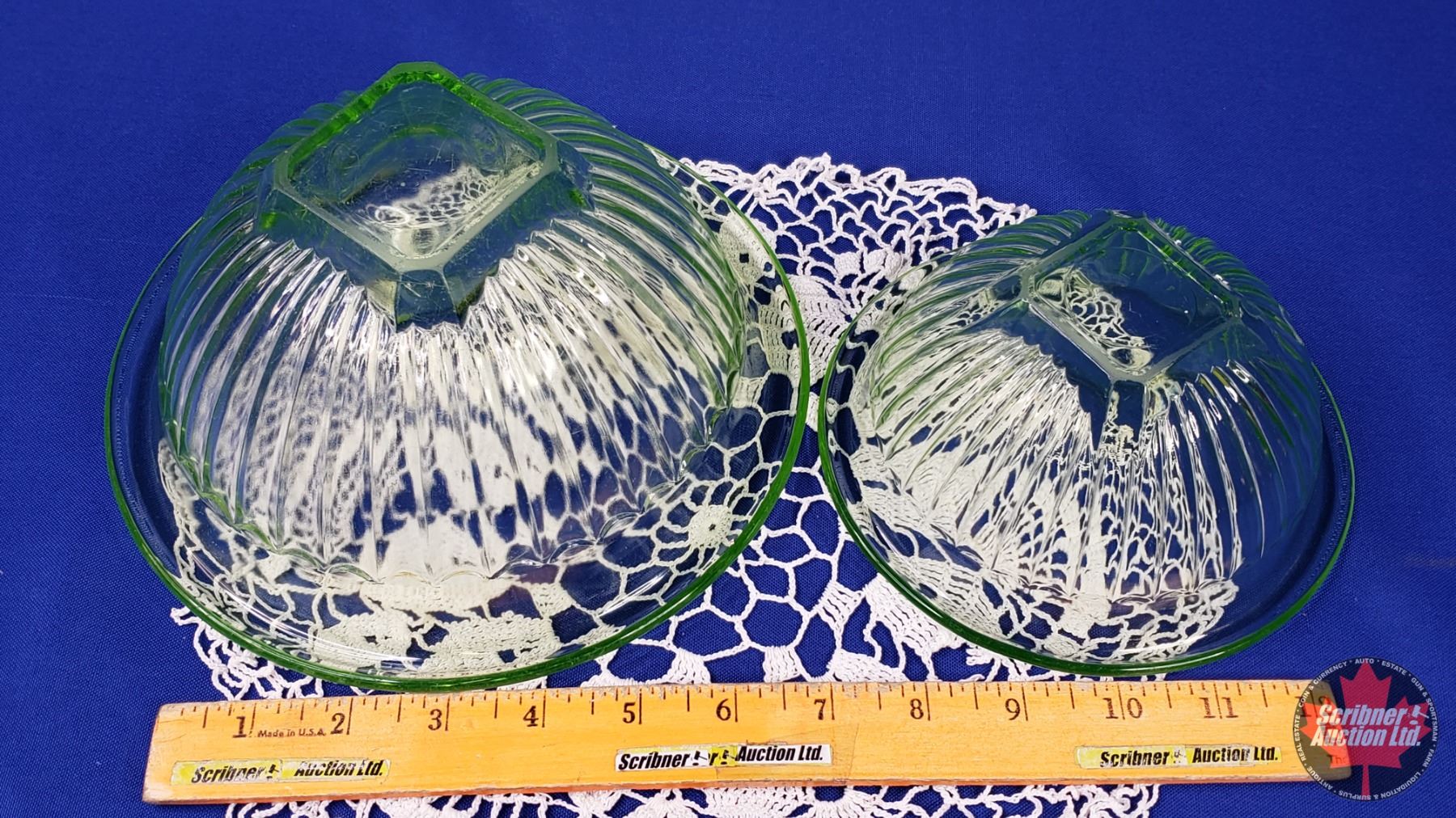 Uranium Glass : Mixing Bowls (2) (Largest 4"H x 8-1/4"Dia) (SEE PICS!)