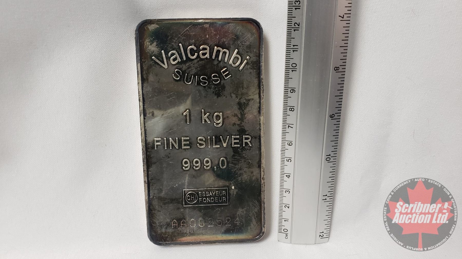 Valcambi Suisse 1 kg Fine Silver 999,0 CHI Essayeur Fondeur S/N#AA002524