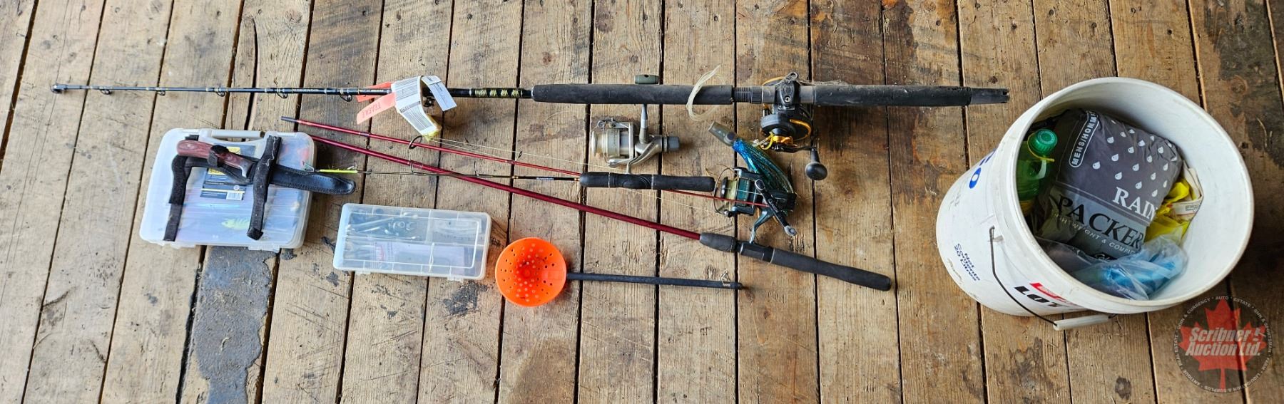 Variety Fishing Rods & Lures & Fillet Knife ; Rain Jacket ; Fish Glove; etc