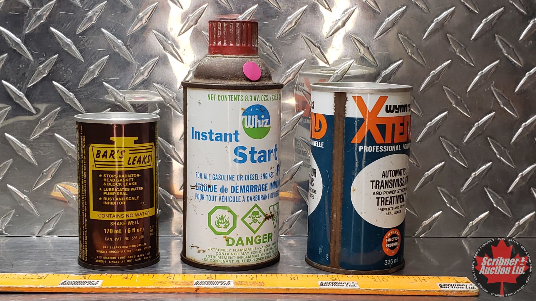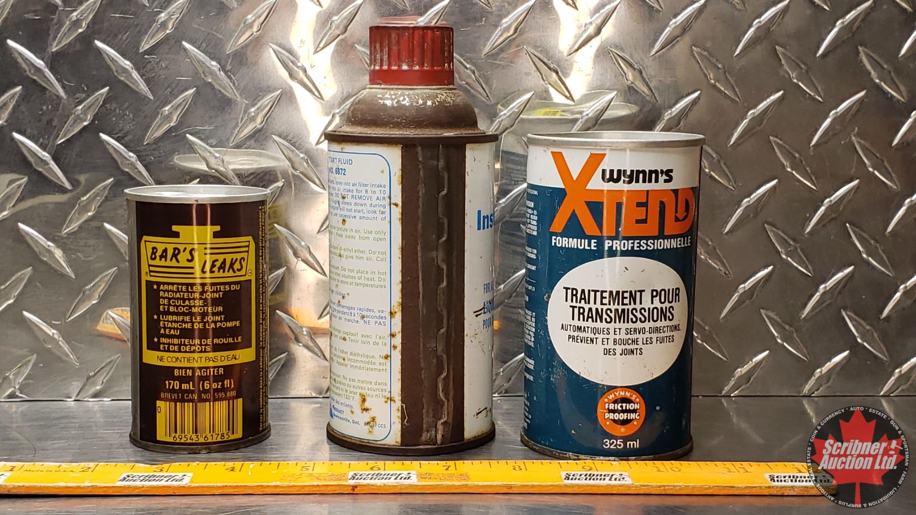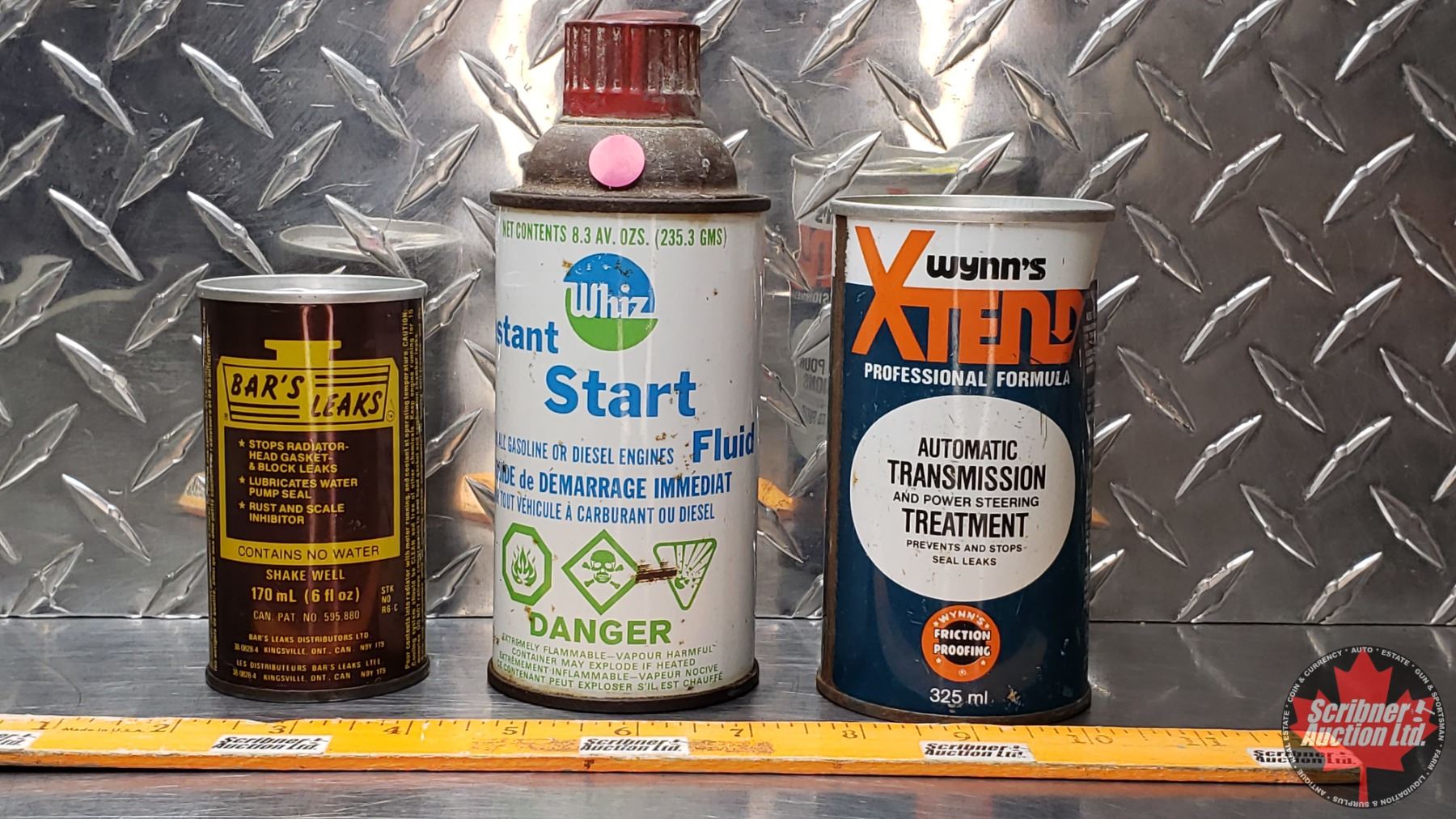 Variety Tins (3): Bar's Leaks (FULL) ; Whiz Instant Start Fluid (Empty) & Wynn's XTen (FULL) (SEE PICS!)