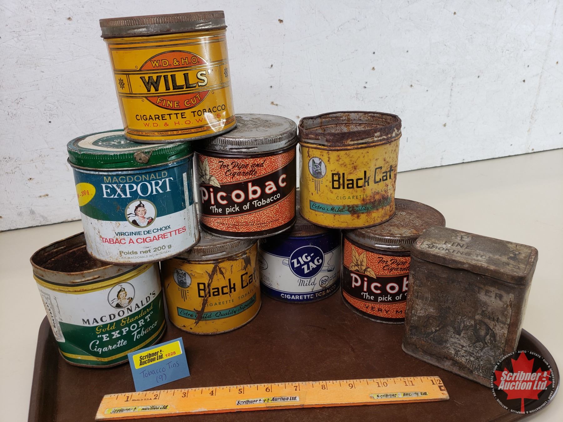Variety Tobacco Tins (9) : Black Cat; Picobac; Zig Zag; Wills' ; MacDonald Export ; etc ! (SEE PICS!)