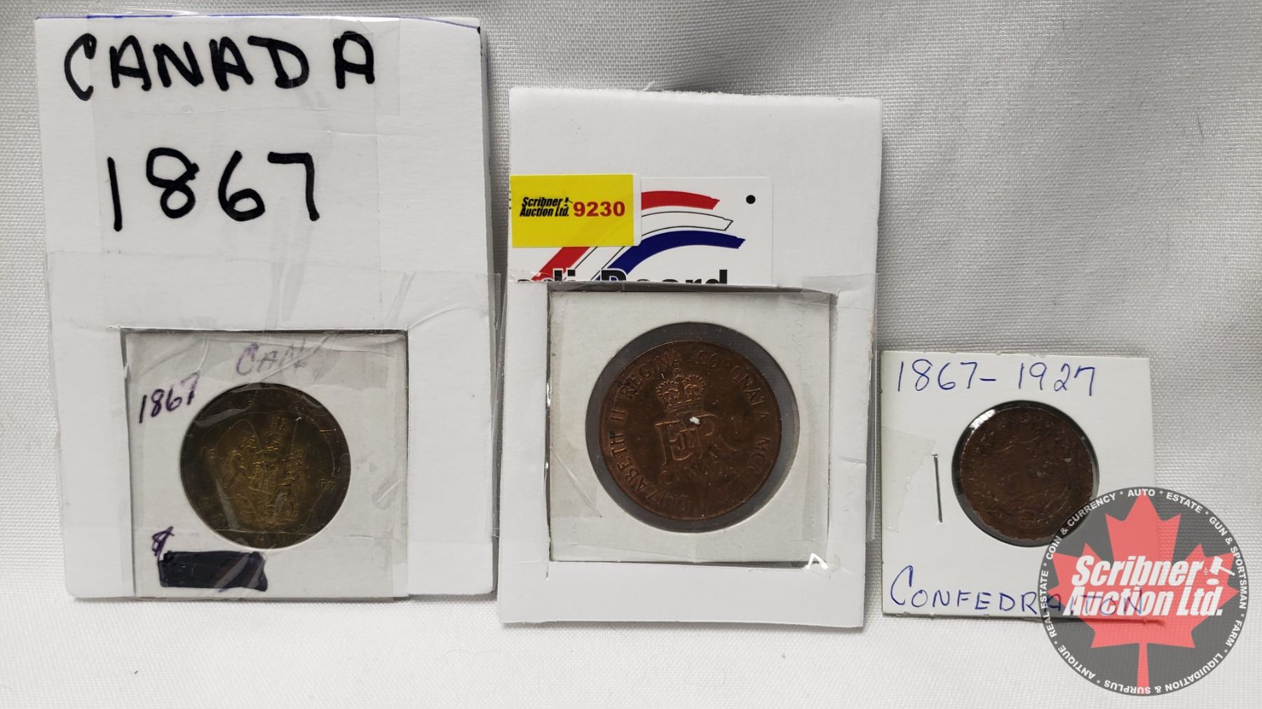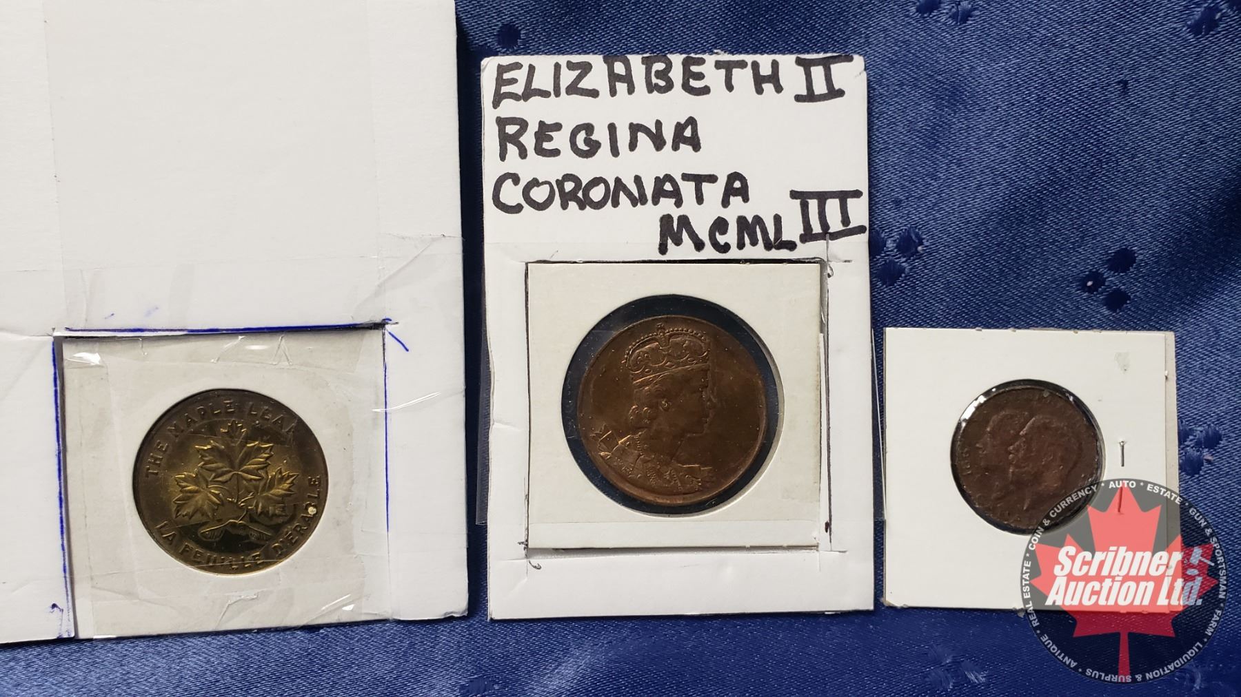Variety Tokens (3): ERII ; 1927 Confederation ; Canada 1867 Maple Leaf