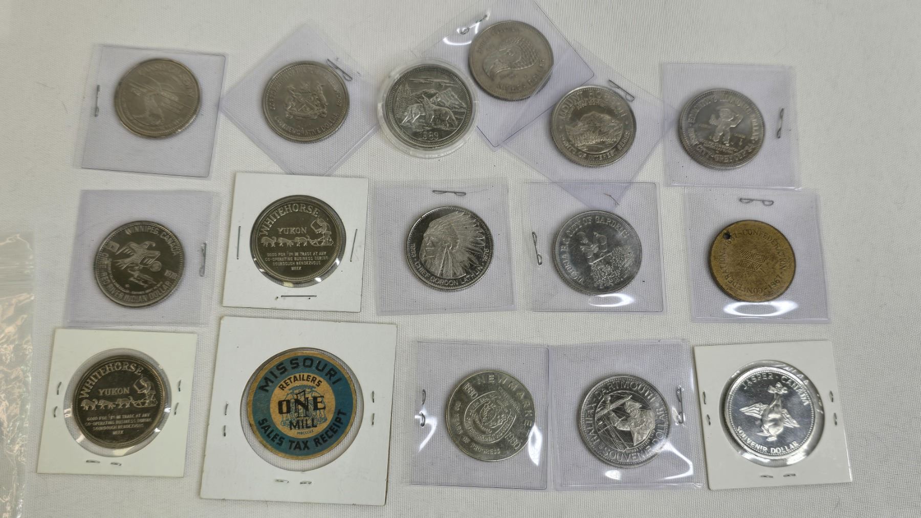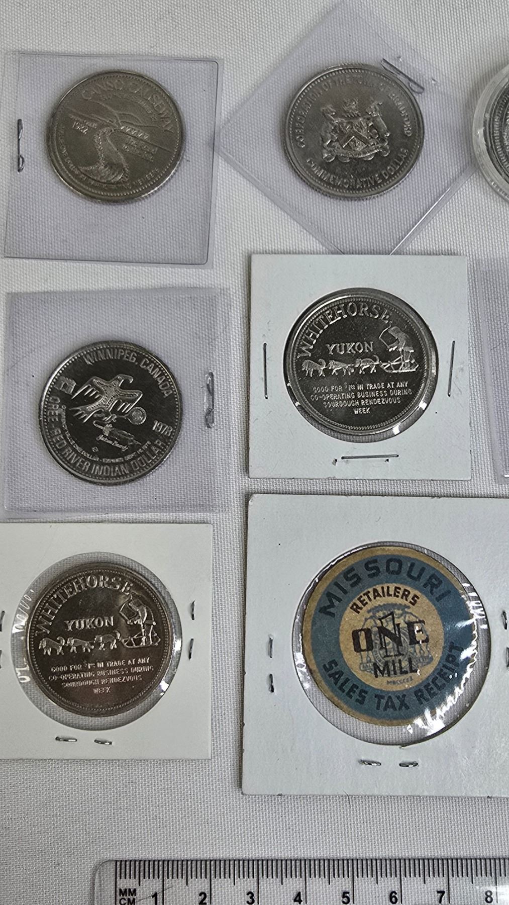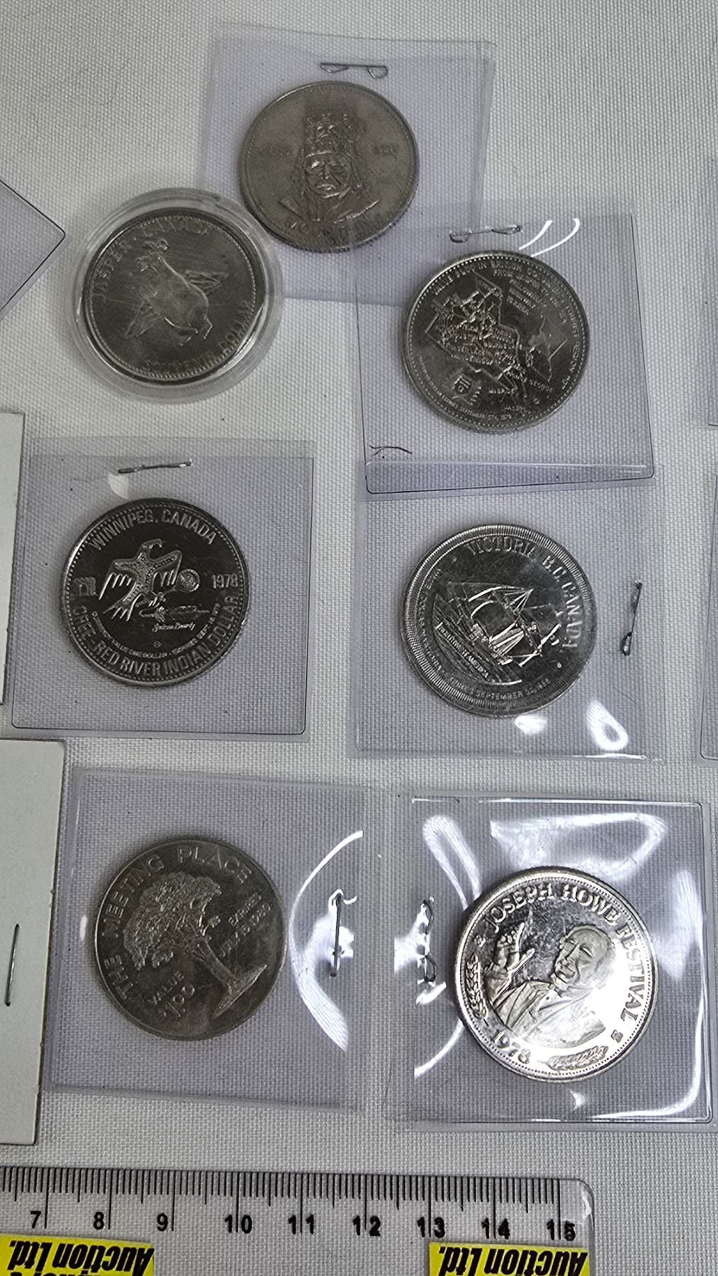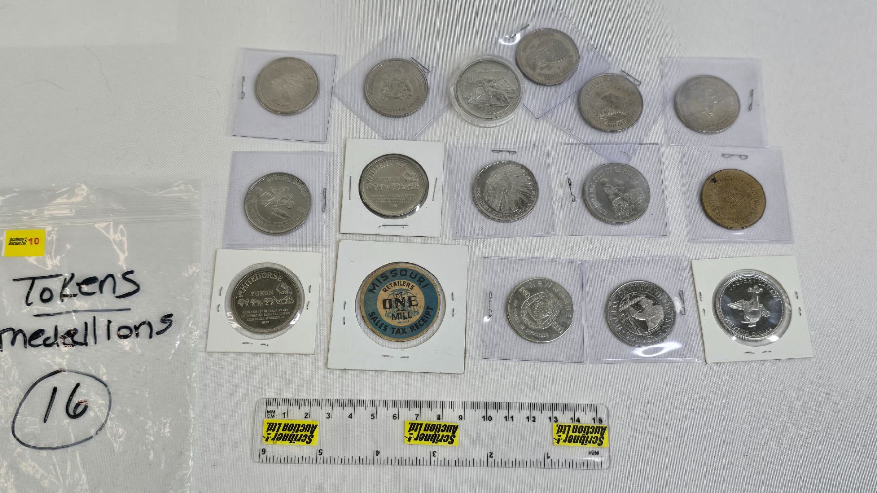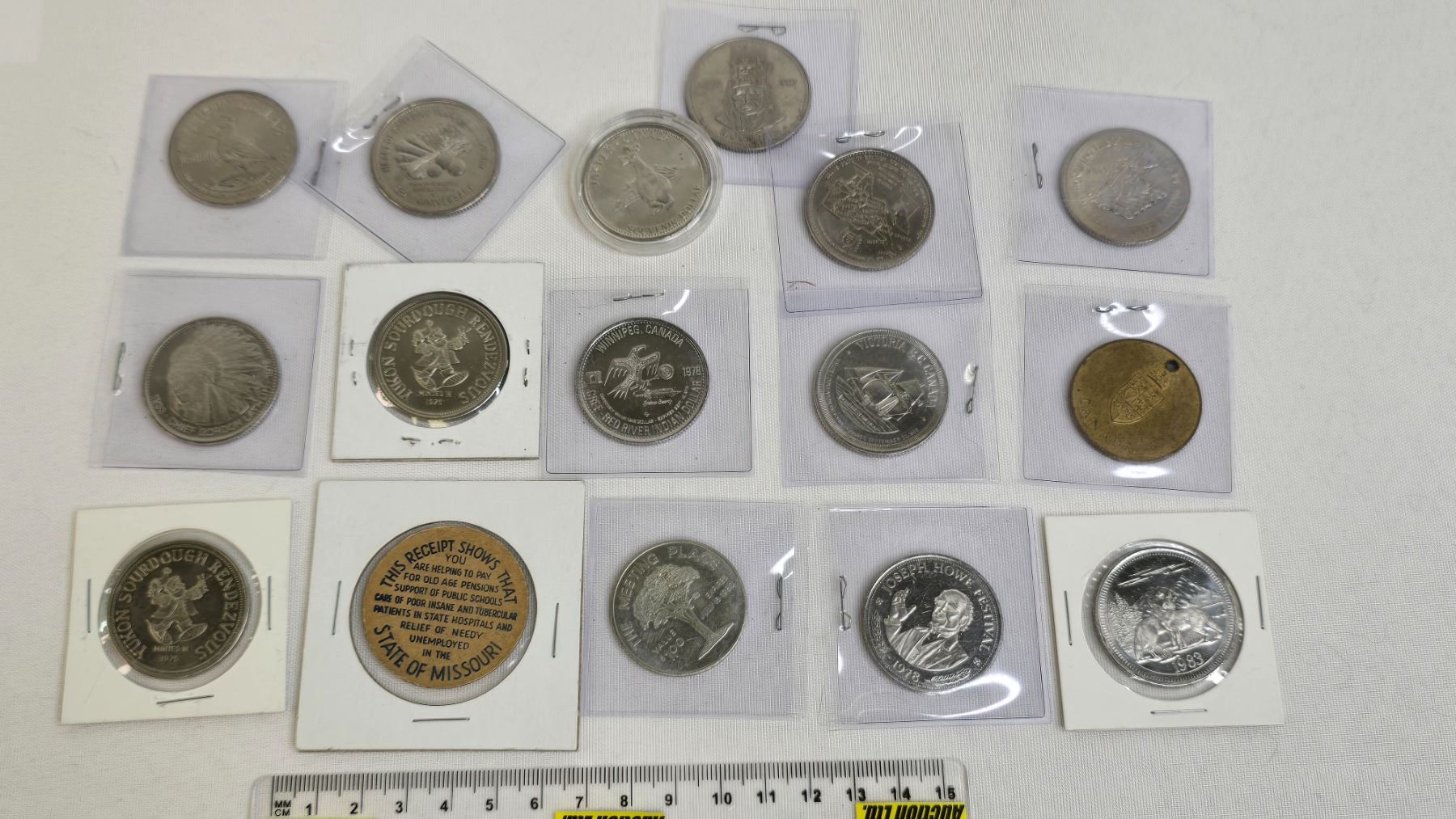 Variety Tokens/Medallions (16) : Whitehorse Yukon; Jasper; Winnipeg; Edmonton Klondike; Confederation; Nishga Dollar; Missouri; Mount Robson; Victoria; Halifax; Newmarket (SEE PICS!) (Listing & Descriptions are a GUIDE ONLY and are subject to changes, errors, additions or deletions. Please use the provided pictures to satisfy yourself to the Condition and/or Grades. Please Read & Understand All Terms & Conditions for this Auction Sale.)