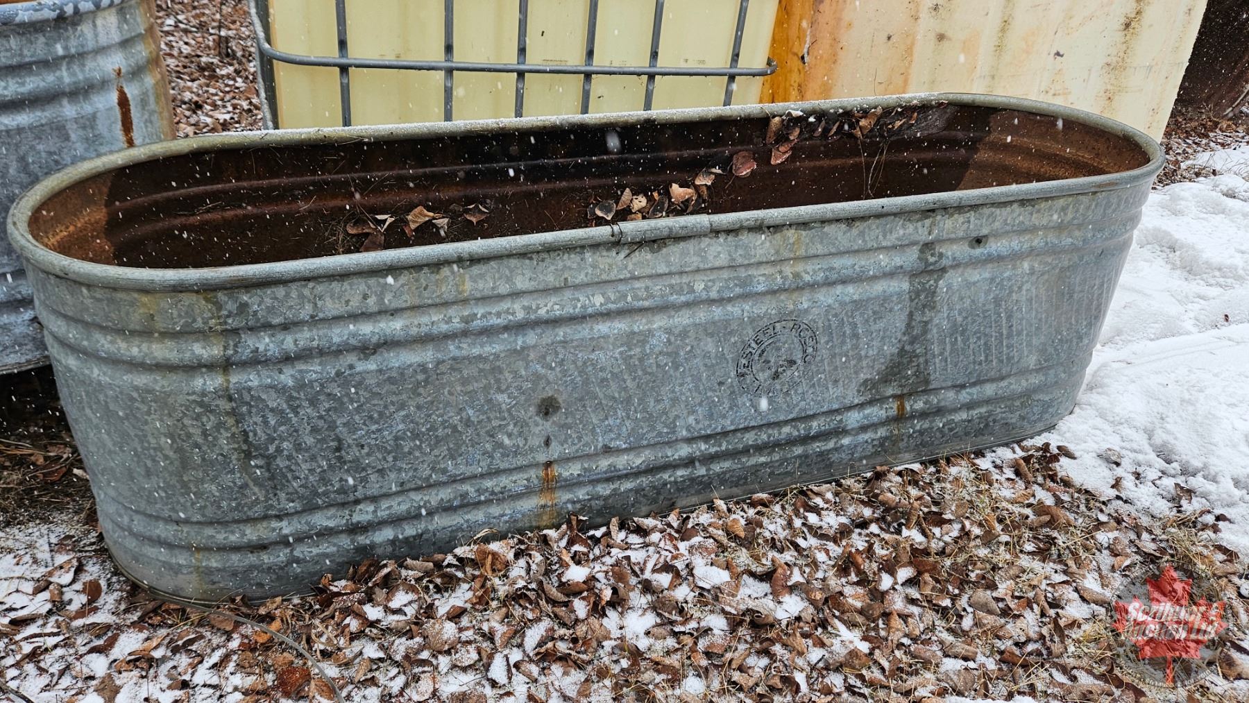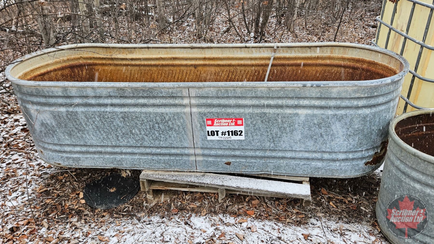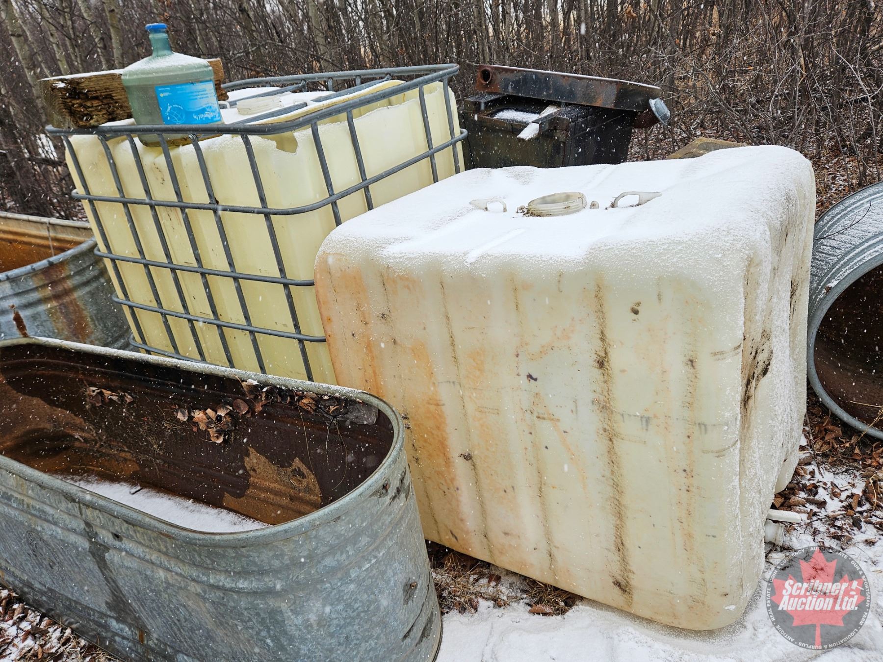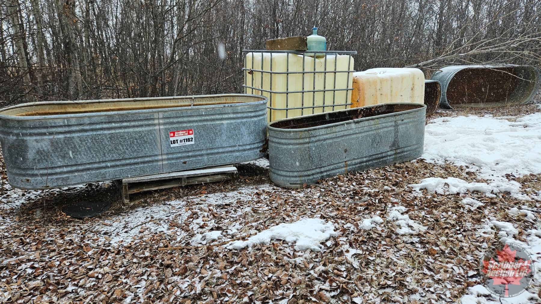 Variety of Galvanized Troughs (5) & Poly Tanks (2) & Eskick Mixer & Hydraulic Tank