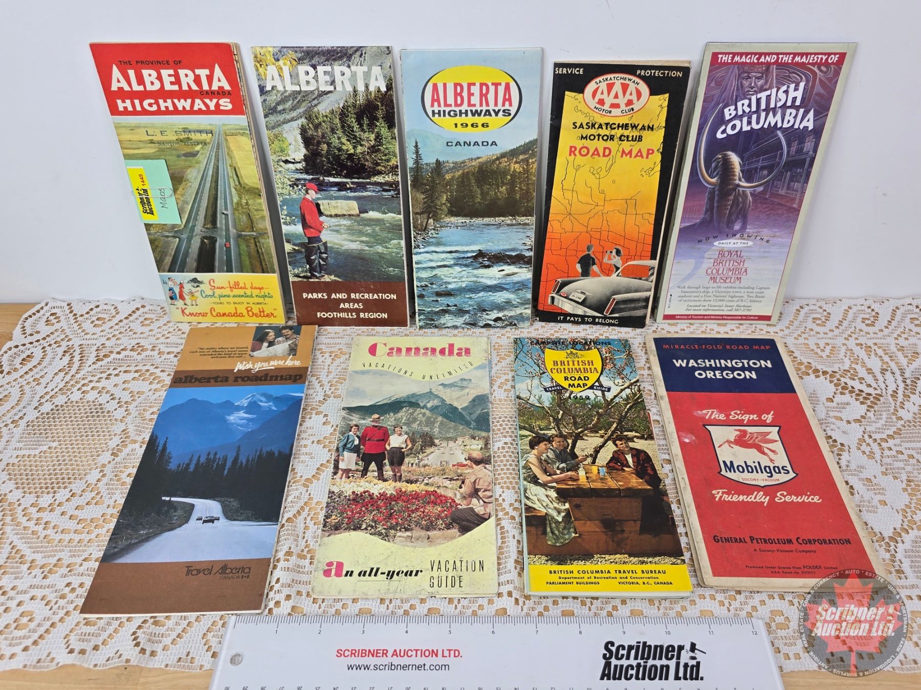 Variety of Road Maps : Washington ; Alberta ; British Columbia; Canada; Saskatchewan; etc