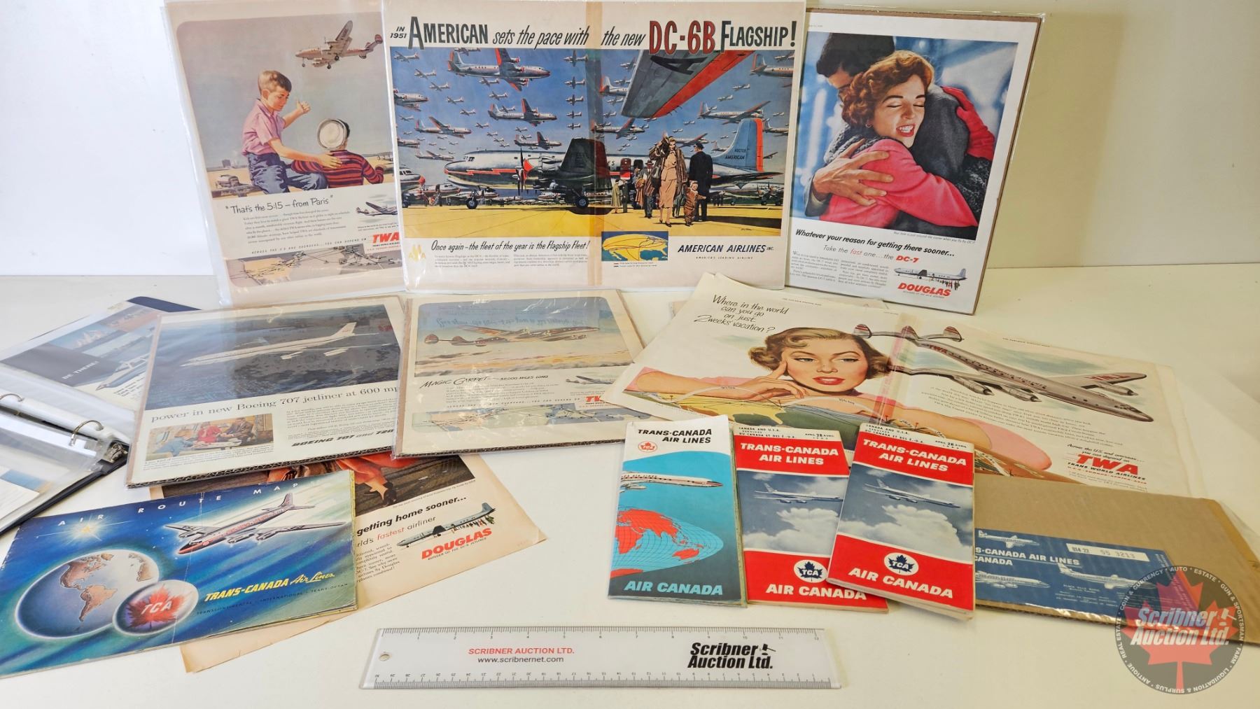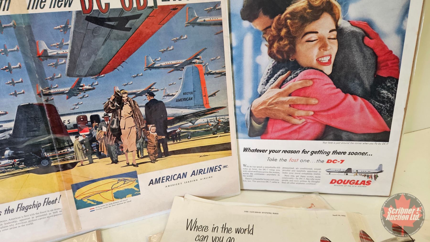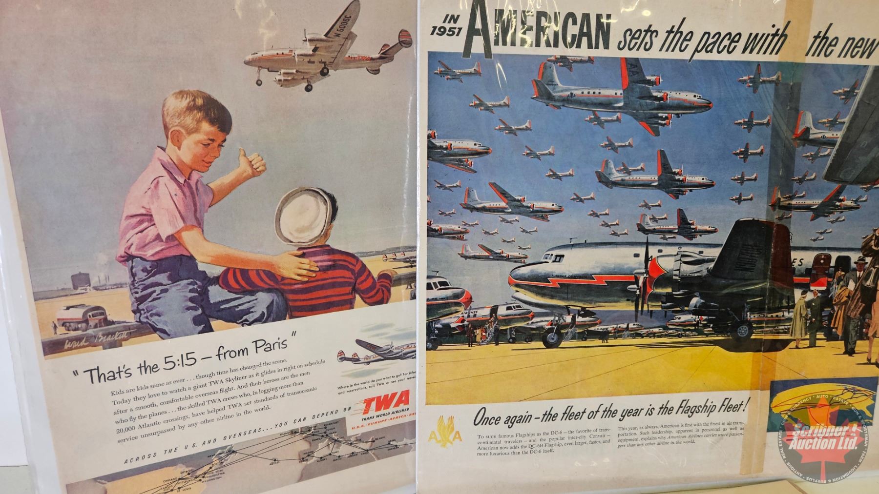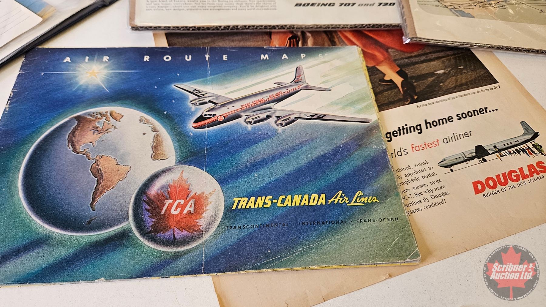 Vintage Airplane Magazine Ads including Air Route Maps (c. 1950's & 60's)