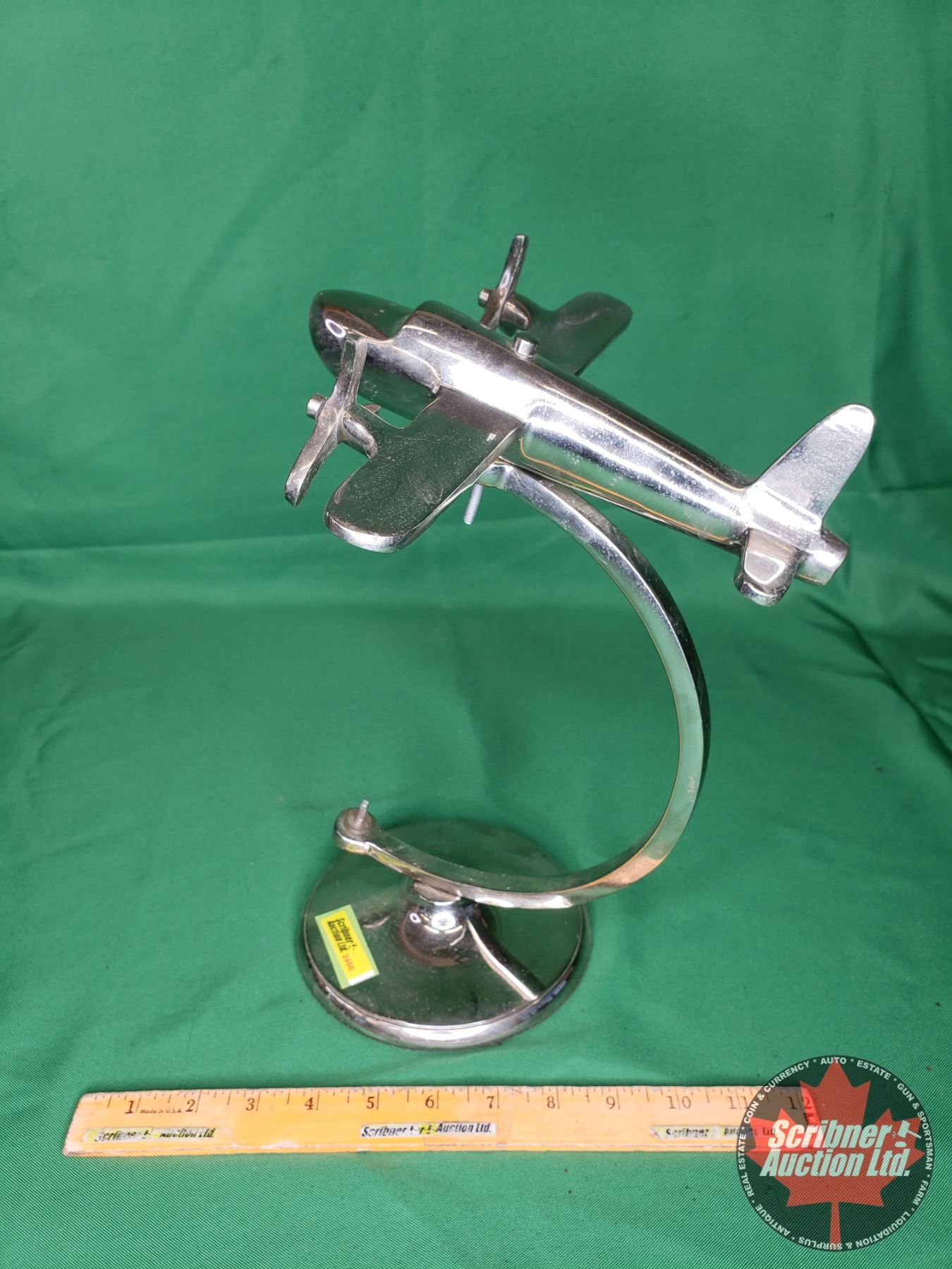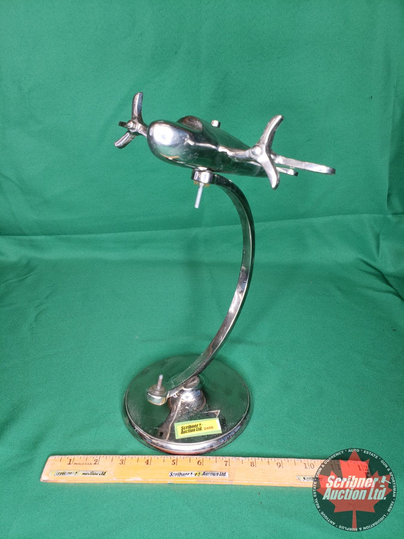Vintage Art Deco Airplane Ornament (Missing Globe) (13"H x 9"W x 9"D) (SEE PICS!)
