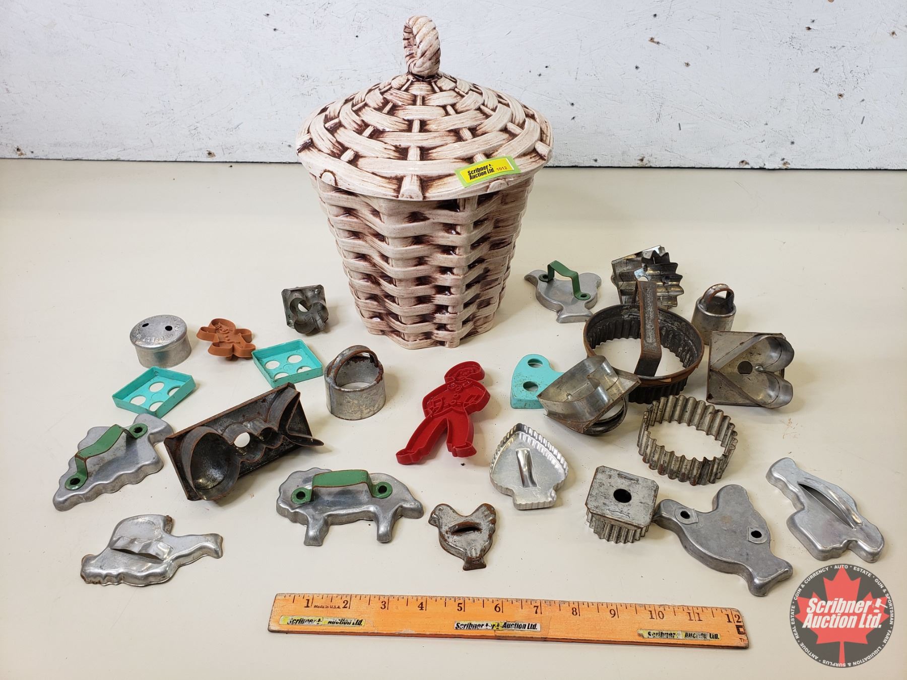 Vintage Bakers Combo: Ceramic Cookie Jar & Large Variety of Cookie Cutters (Cookie Jar 12"H) (SEE PICS!)