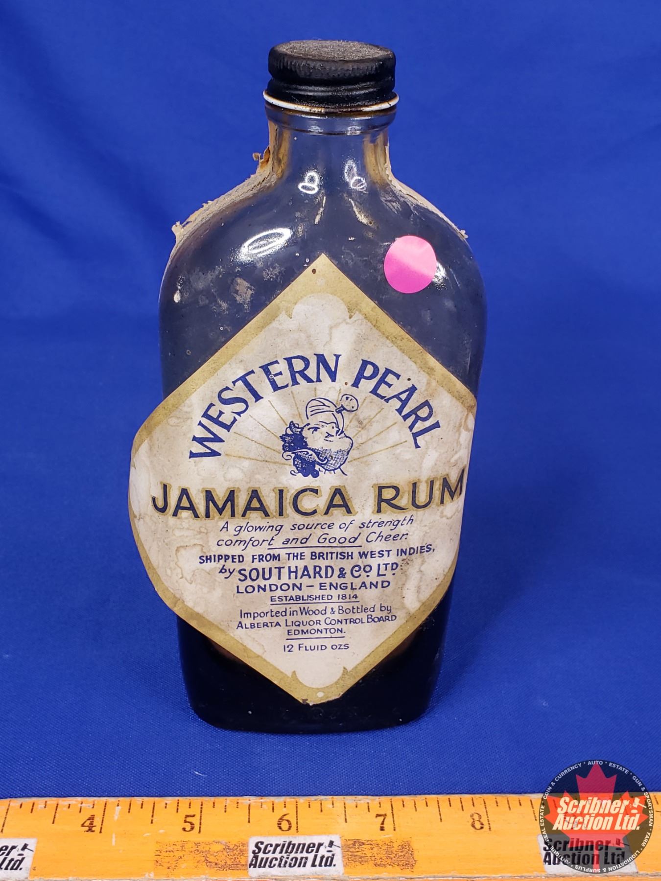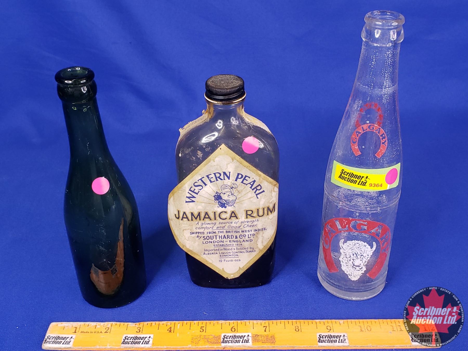 Vintage Bottles (3): Calgary Brewing, Western Pearl Jamaica Rum & Green Glass Bottle (Tallest : 10"H) (SEE PICS!)