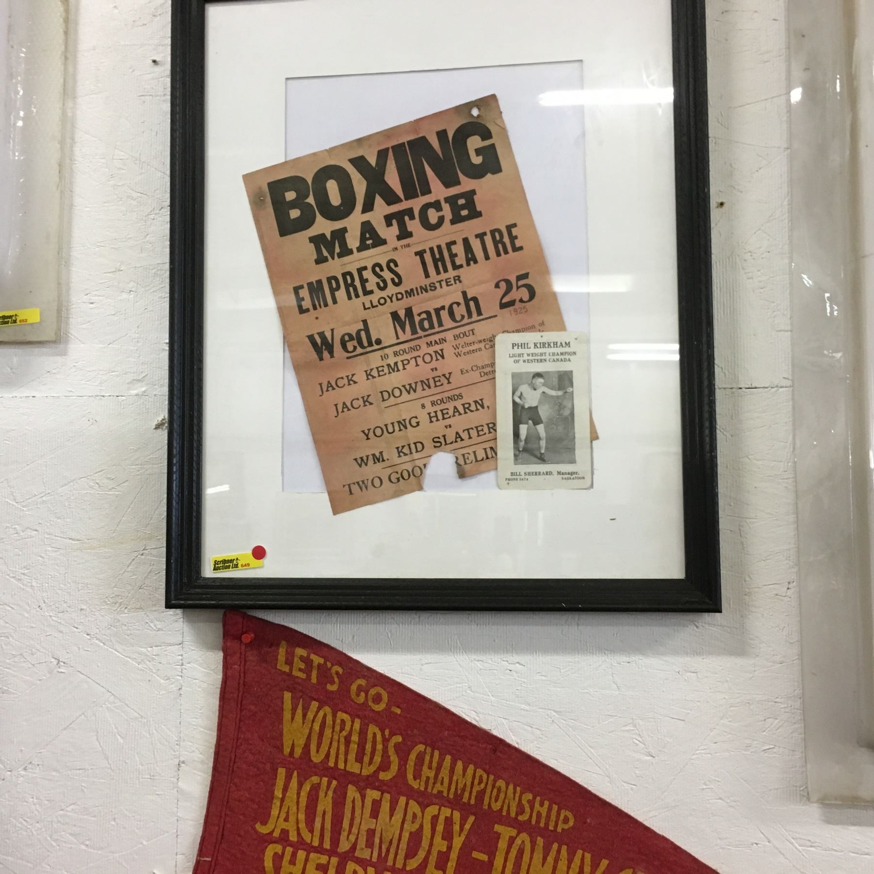 Vintage Boxing Match Poster "Empress Theatre Lloydminster" , Phil Kirkham Boxing Card & World Championship Dempsey-Gibbons 1923 Pendant Flag