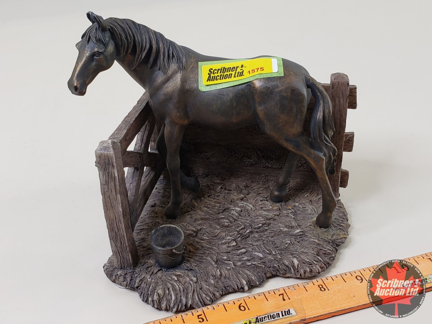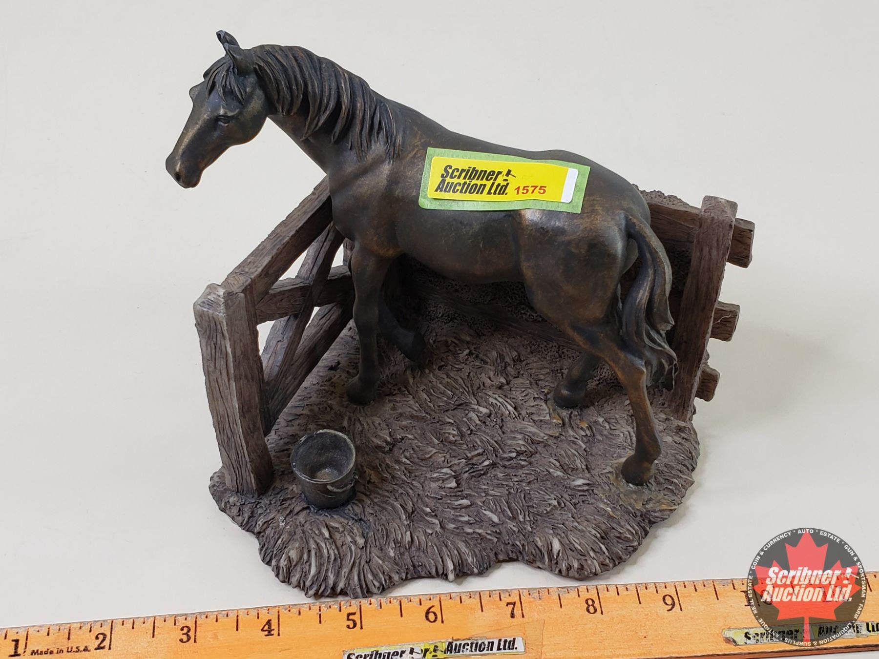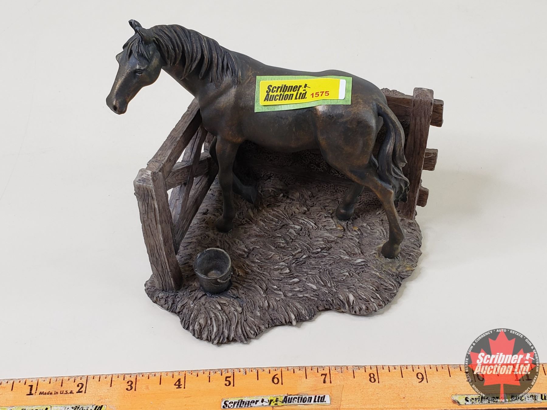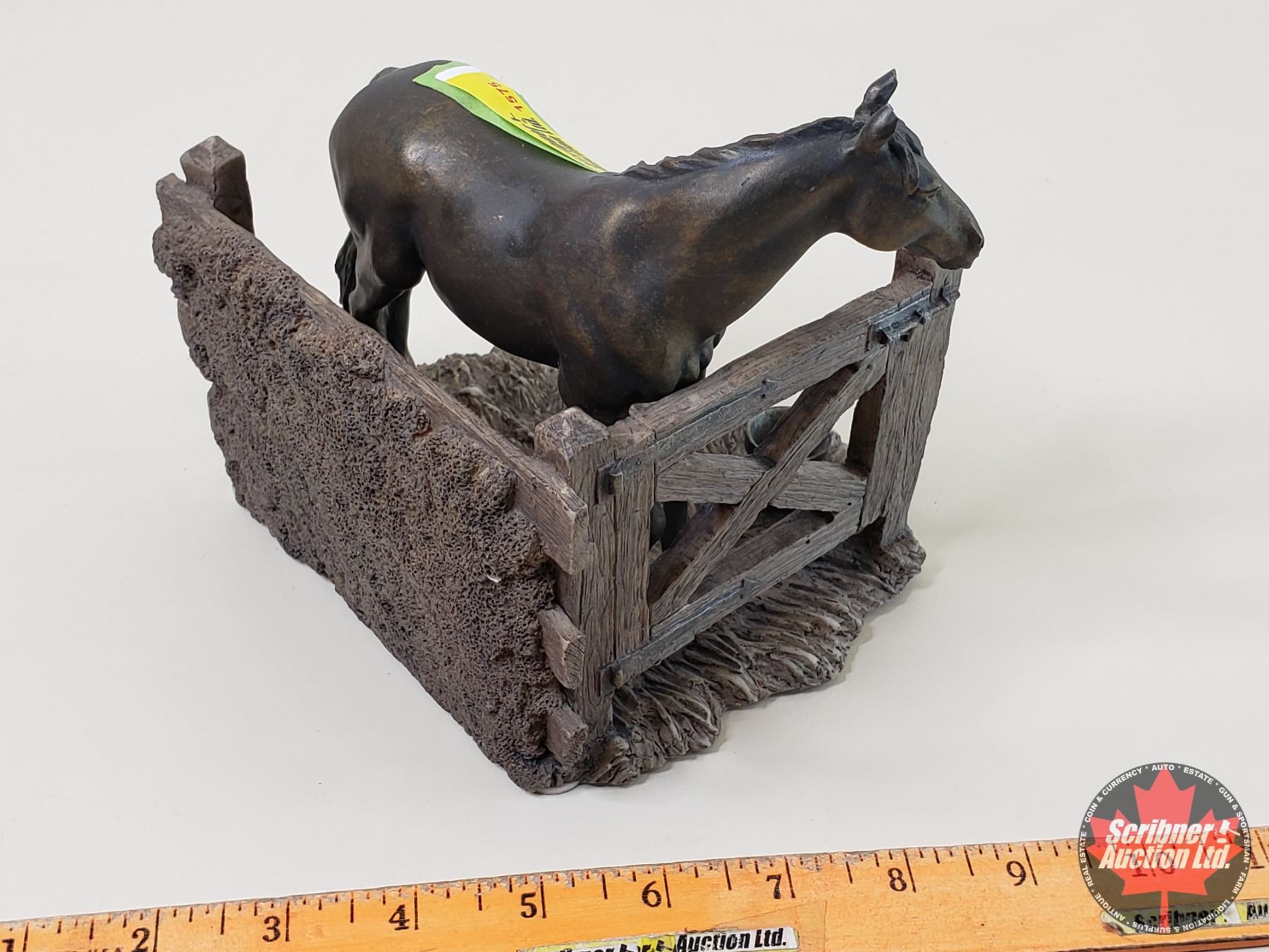 Vintage Bridle Path Horse Sculpture "Horse By Farm Fence" (6"H x 8"W x 6"D) (SEE PICS!)